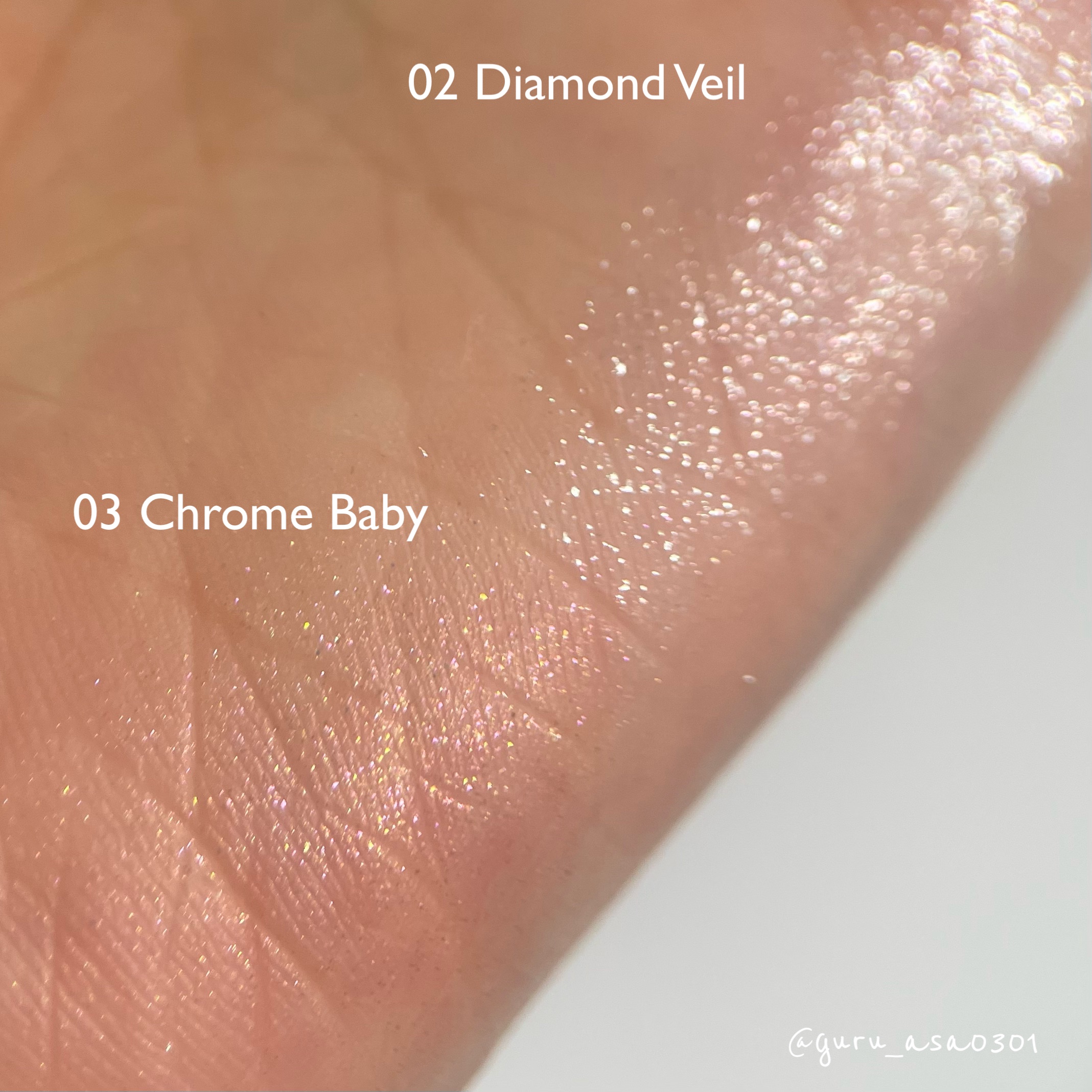 - <Dewy Moon> 合成フルオロフロゴパイト、酸化チタン、マイカ、(HDI/トリメチロールヘキシルラクトン) クロスポリマー、シリカ、リン酸Ca、ジメチコン、酸化鉄、グリセリン、トリエトキシカプリリルシラン、パルミチン酸イソプロピル、ケイ酸(AL/Mg)、ペンチレングリコール、ミリスチン酸Mg、ポリソルベート20、ステアロイルオキシステアリン酸オクチルドデシル、(アクリルアミド/アクリロイルジメチルタウリンNa/アクリル酸)コポリマー、デヒドロ酢酸Na、オリーブ油脂肪酸ソルビタン、ステアリン酸ソルビタン、イソヘキサデカン、フェノキシエタノール、ソルビン酸K、エチルヘキシルグリセリン、ポリソルベート80、オレイン酸ソルビタン、トコフェロール <Chrome Baby> マイカ、ホウケイ酸(Ca/Al)、シリカ、酸化チタン、オクチルドデカノール、ジメチコン、(ジフェニルジメチコン/ビニルジフェニルジメチコン/シルセスキオキサン) クロスポリマー、酸化鉄、グリセリン、ミリスチン酸Mg、(HDI/トリメチロールヘキシルラクトン)クロスポリマパルミチン酸イソプロピル、グンジョウ、ペンチレングリコール、ケイ酸(AL/Mg)、ポリソルベート20、赤226、ステアロイルオキシステアリン酸オクチルドデシル、酸化スズ、(アクリルアミド/アクリロイルジメチルタウリンNa/アクリル酸)コポリマー、トリエトキシカプリリルシラン、オリーブ油脂肪酸ソルビタン、ステアリン酸ソルビタン、イソヘキサデカン、フェノキシエタノエール、デヒドロ酢酸Na、ソルビン酸K、エチルヘキシルグリセリン、カオリン、ポリソルベート80オレイン酸ソルビタン、トコフェロール <Milky Moon> マイカ、酸化チタン、(HDI/トリメチロールヘキシルラクトン) クロスポリマー、ジメチコン、合成フルオロフロゴパイト、シリカ、エチルヘキサン酸セチル、グリセリン、パルミチン酸イソプロピル、ペンチレングリコール、ケイ酸(AL/Mg)、トリエトキシカプリリルシラン、ポリメチルシルセスキオキサン、ミリスチン酸Mg、ポリソルベート20、ステアロイルオキシステアリン酸オクチルドデシル、(アクリルアミド/アクリロイルジメチルタウリンNa/アクリル酸)コポリマー、オリーブ油脂肪酸ソルビタン、ステアリン酸ソルビタン、デヒドロ酢酸Na、イソヘキサデカン、フェノキシエタノール、ソルビン酸K、エチルヘキシルグリセ リン、酸化スズ、ポリソルベート80、オレイン酸ソルビタン、トコフェロール