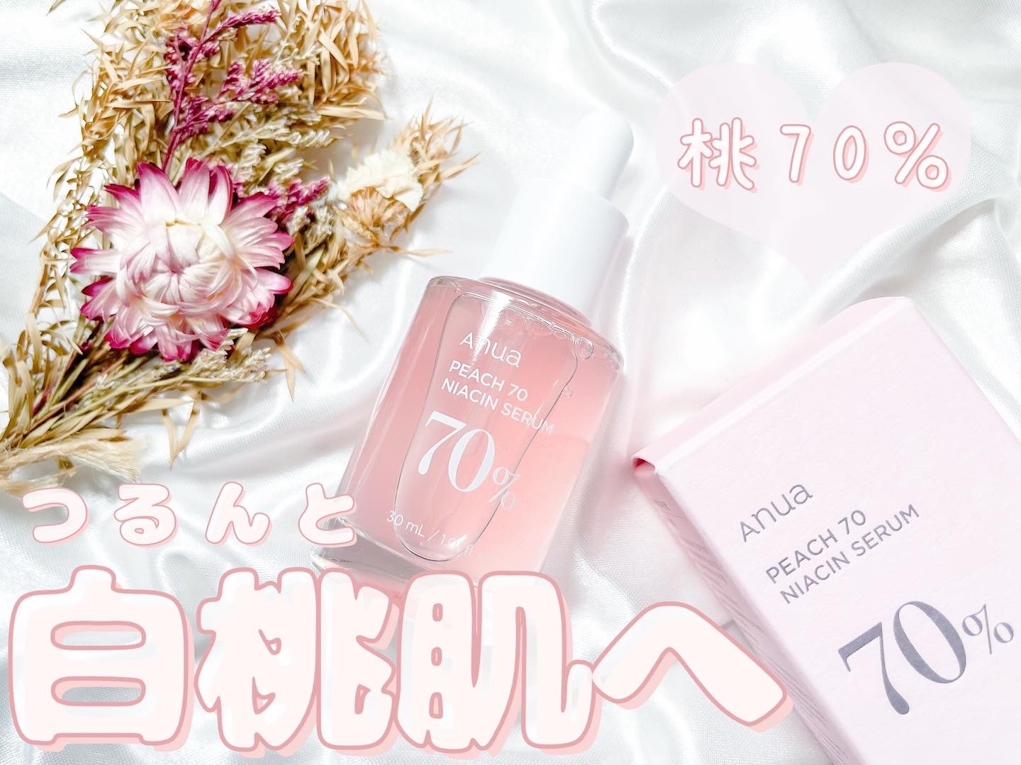 .Anua(アヌア)桃70%ナイアシンセラム30ml以前Anuaドクダミ80%水分沈静アンプルを試させていただいてリピートして愛用中なんですがなんと今回は2023年1月1日に新発売されているこちらを試させていただきました🍑「つるんと白桃肌を叶...