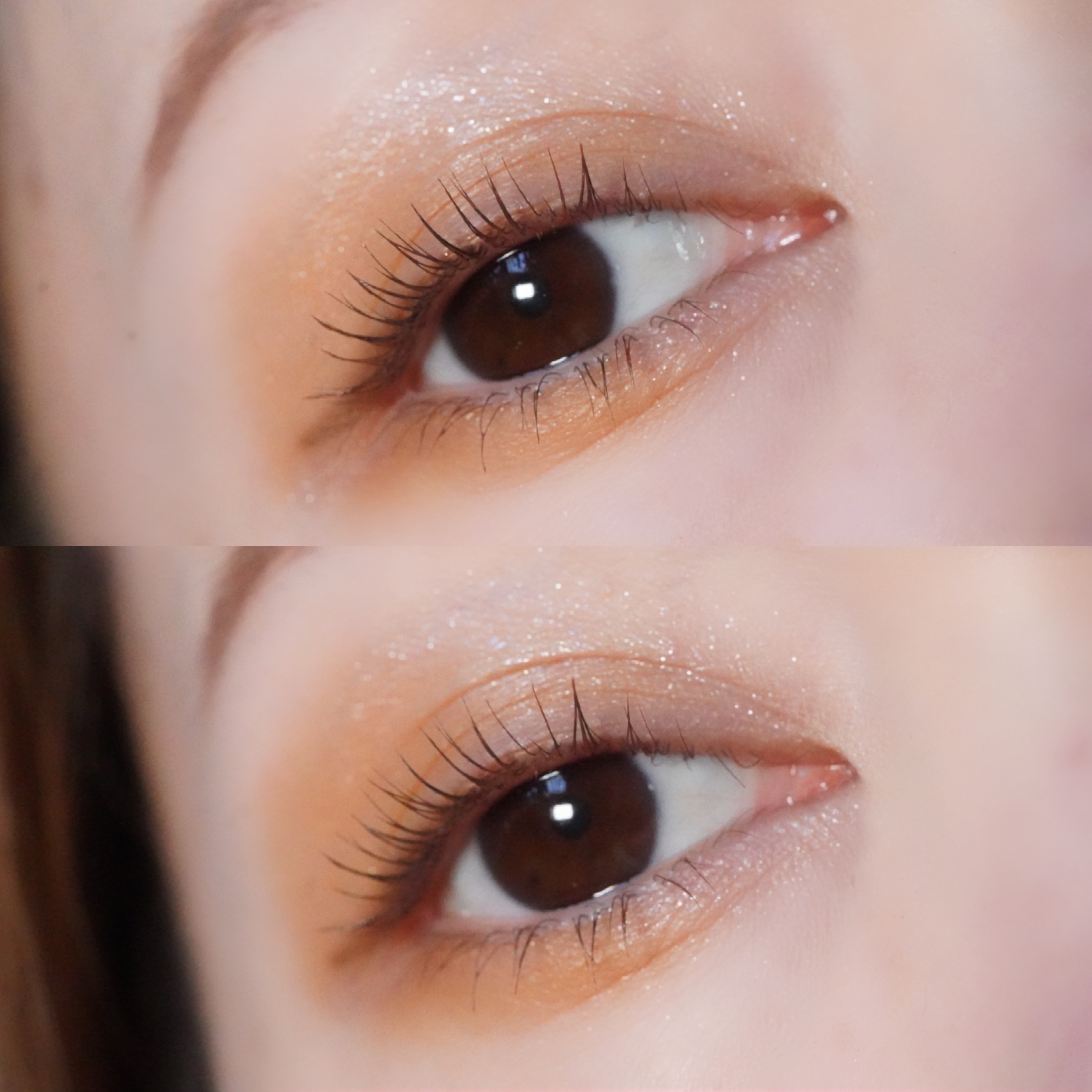 よくパレットのなかで明るいカラーをベースにまぶたに広く塗ることが多いのですが、パール感のあるカラーを避ける🙆♀️! パール感たっぷりの明るいカラーは涙袋に使うぐらい光を集めてぷっくり見せてくれるので、まぶたに広く使うと腫れぼったく見えがち😓 目元を明るくみせてくれたり、次に使うアイシャドウをぼかしやすくしてくれるけど、すっ飛ばしてメインのカラーを塗っちゃう✊🏻❤️🔥 涙袋にはたっぷり塗ってぷっくり見せる🙆♀️💕 シルキースフレアイズのマットタイプはすごく優れているな〜と感じました☺️💗 赤やオレンジなどは、入れすぎると腫れぼったく見えやすいので、見せたいカラーは下まぶた目尻にのせて色をたのしむ♡♡ パール感なしの透けマットだけじゃ物足りない… そう感じさせない華やかなラメが左上に入っているので黒目上と涙袋にのせるとすごく可愛い仕上がりに😍! 厄介な左右差のお陰でマットアイシャドウが好きになりました😌💕