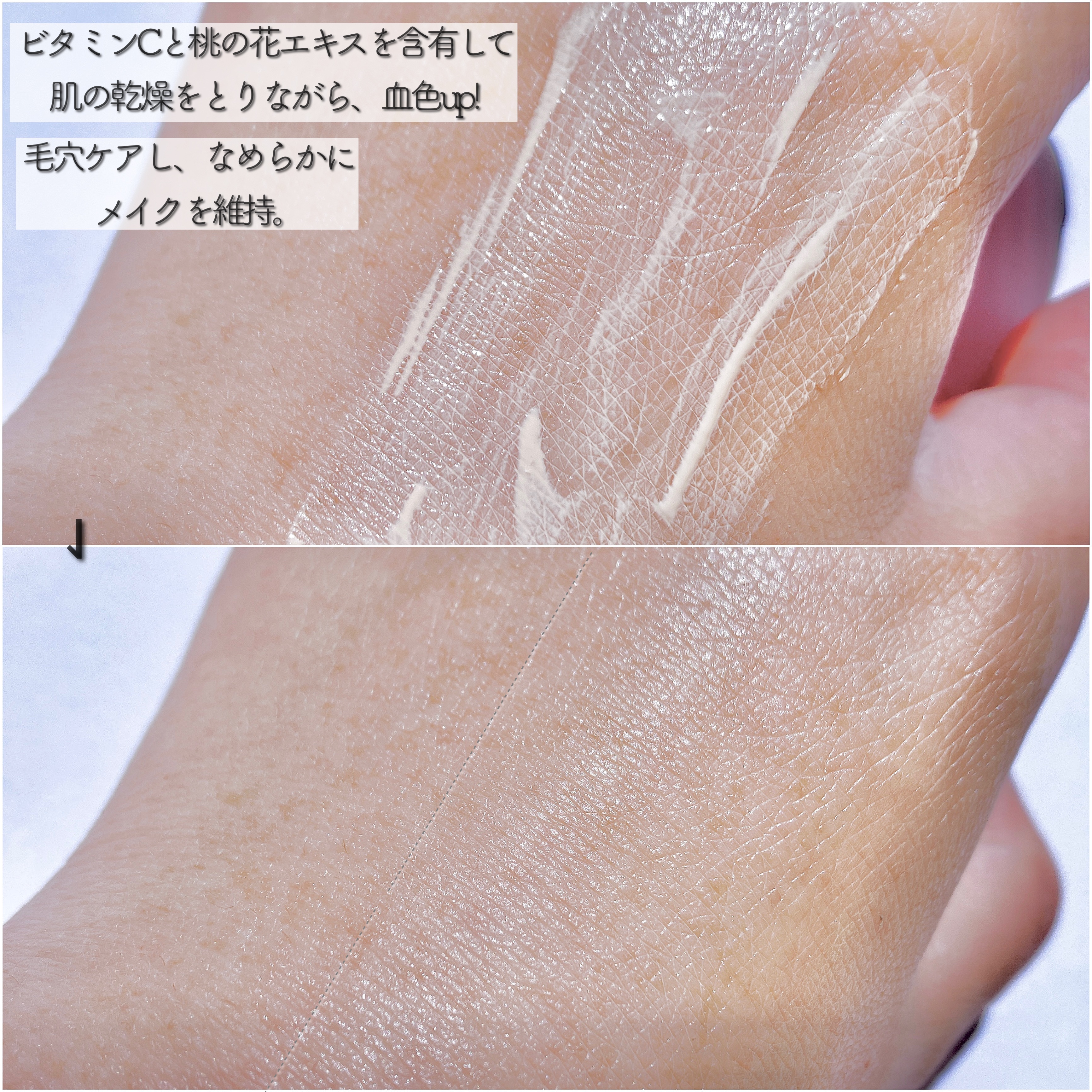 - ピーチトーンのテクスチャーが、軽やかにフィットし明るさと透明感をプラスしてくれるビタミン配合※の化粧下地。 リキッドタイプでキメの整ったなめらかな肌へ。 さらっとした使用感で、ファンデの密着度を高め化粧持ちをアップ! ※アスコルビン酸 (製品抗酸化剤)