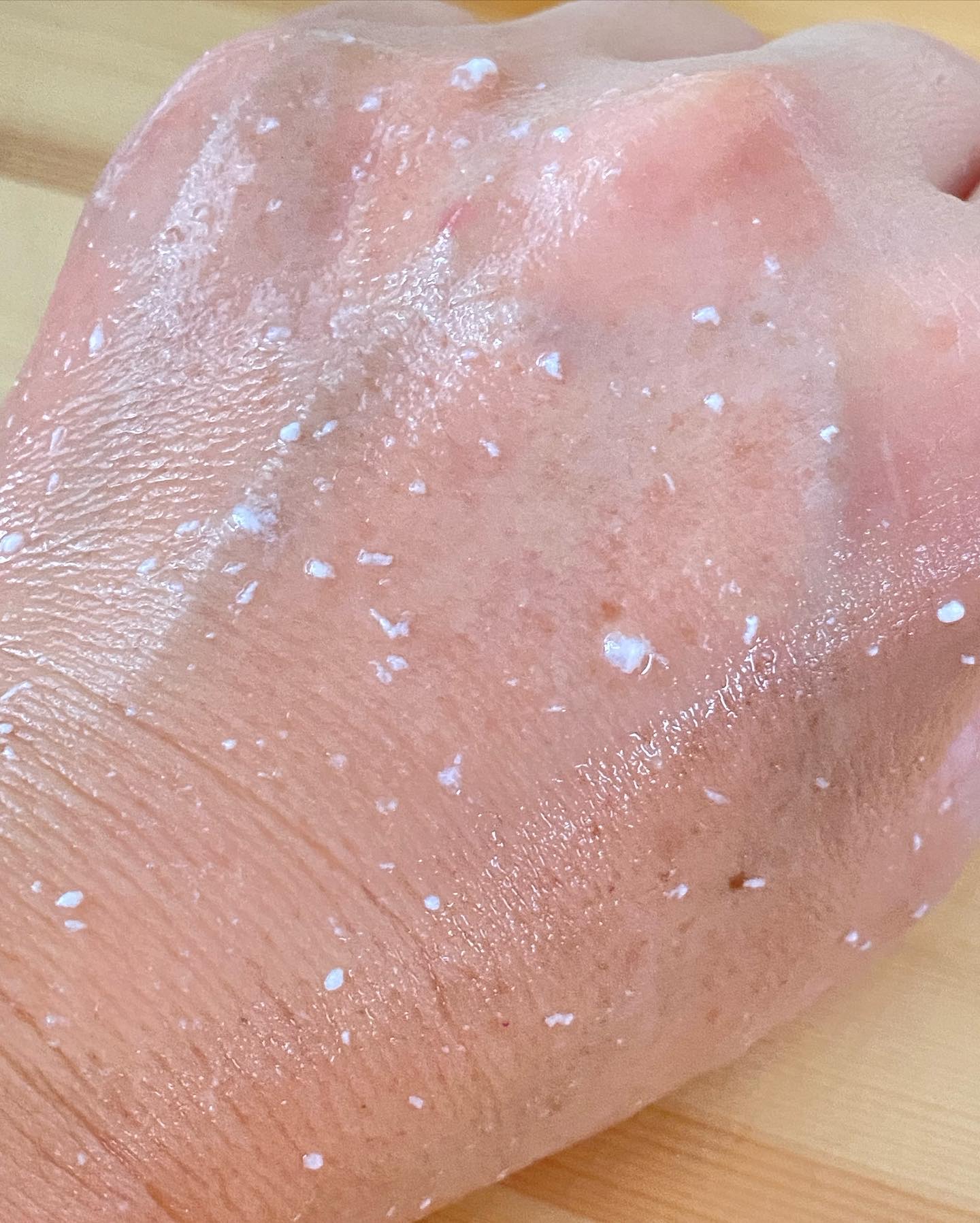 爽やかなグレープフルーツの香りに癒やされながら💛 優しくクルクルとマッサージするだけで古い角質をポロポロからめとってくれる.ᐟ.ᐟ.ᐟ 洗い流した後は肌が明るく感じて 化粧水の入りや化粧ノリがよくなりました🩷