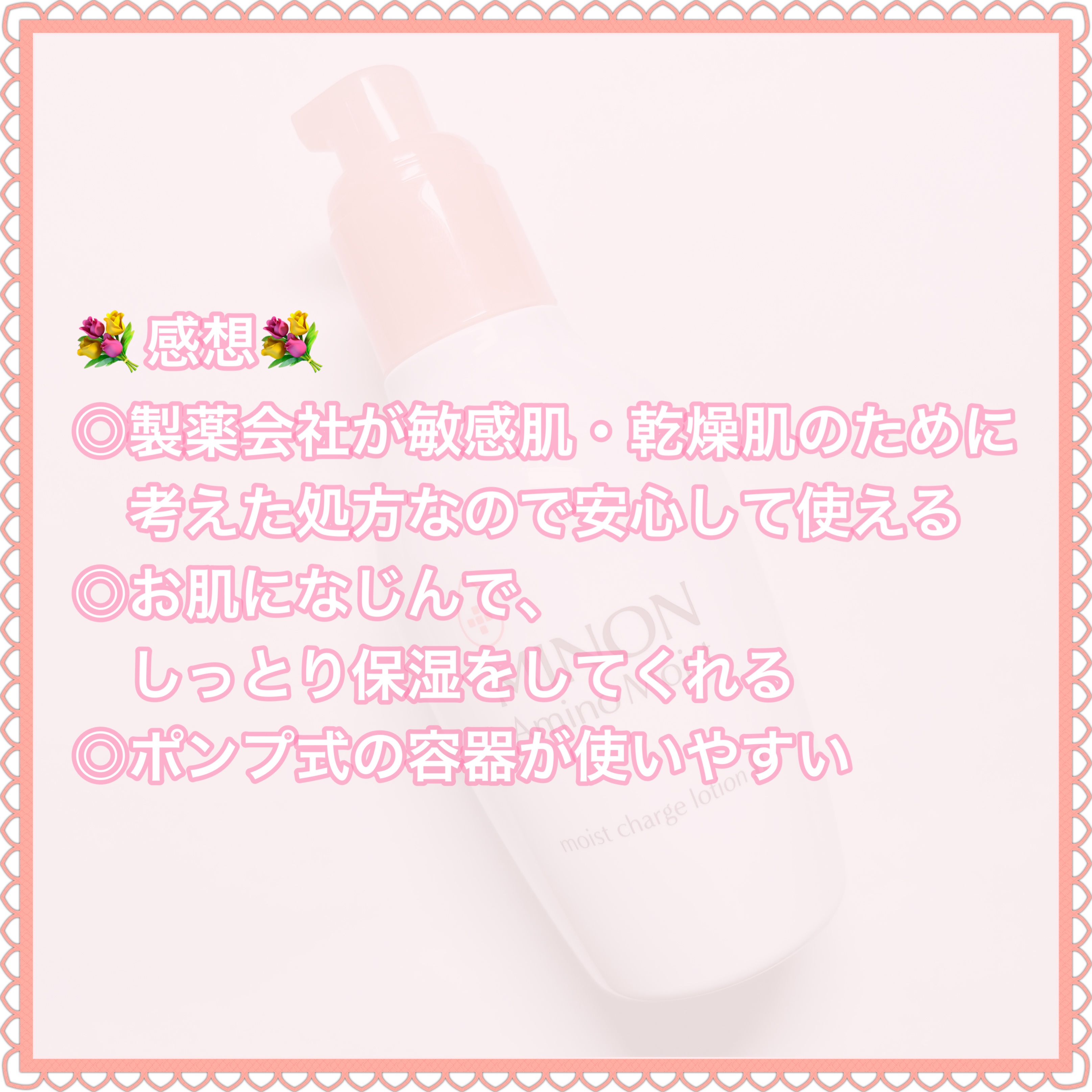 リニューアルした【ミノンアミノモイストモイストチャージローションⅡもっとしっとりタイプ(現品)】をお試しさせて頂きました‼️少しとろみのあるテクスチャーですが、ベタつきはなかったです😃ポンプ式なので使いやすく、詰め替えがあるのがコスパが良いで...