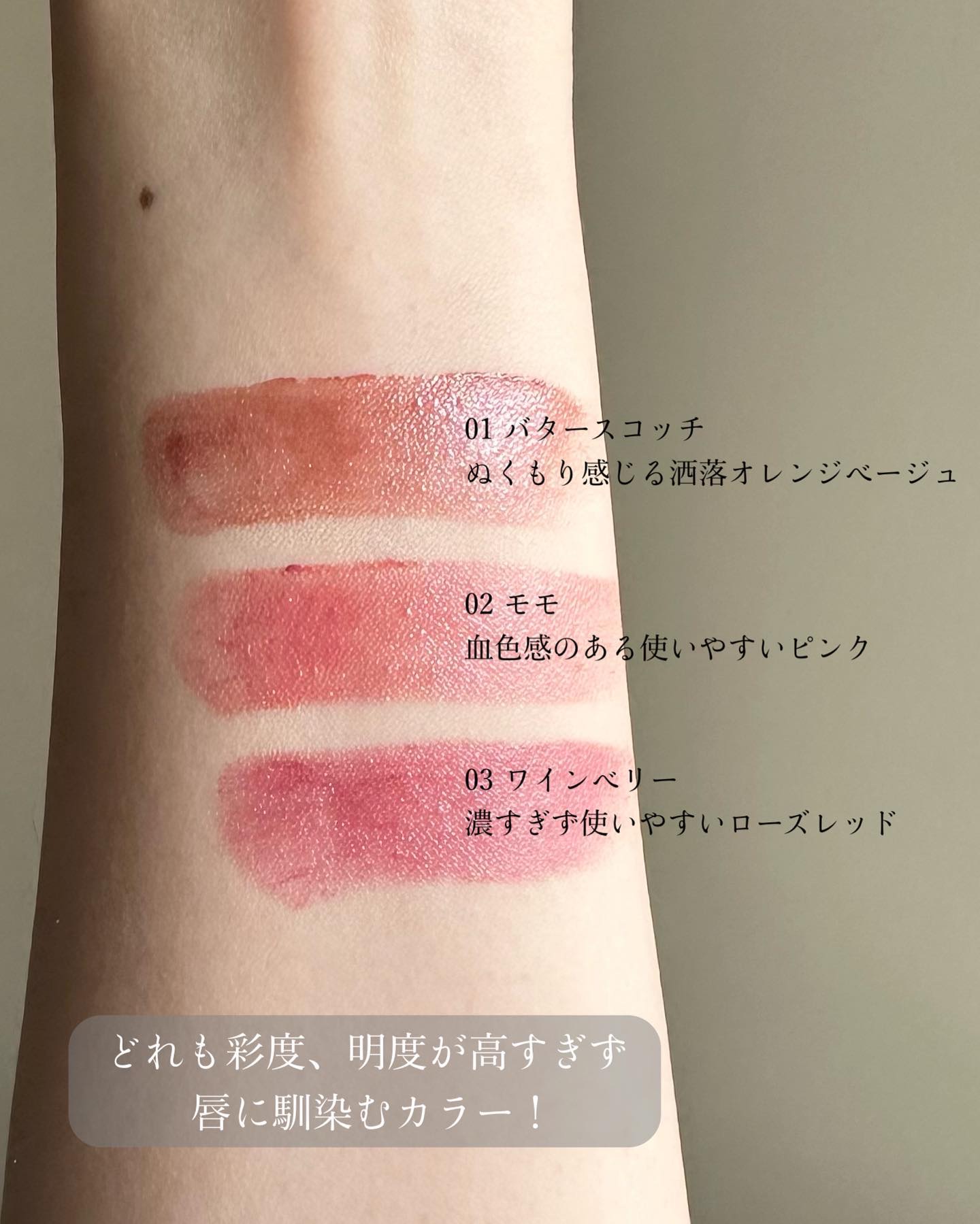 - <01 バタースコッチ> 水添ポリイソブテン、トリエチルヘキサノイン、ビスジグリセリルポリアシルアジペート-2、ヒドロキシステアリン酸エチルヘキシル、ワセリン、リンゴ酸ジイソステアリル、マイクロクリスタリンワックス、合成ワックス、シリカ、セスキイソステアリン酸ソルビタン、メントキシプロパンジオール、キャンデリラロウ、バニリルブチル、トコフェロール、クエン酸、クエン酸Na、ヒアルロン酸Na、アルガニアスピノサ核油、ハチミツ、シア脂、水、BG、加水分解コラーゲン、酸化鉄、酸化チタン、黄4、黄5、赤202、橙201、テトライソステアリン酸ポリグリセリル-2、青1、水酸化Al、赤223 <02 モモ> 水添ポリイソブテン、トリエチルヘキサノイン、ビスジグリセリルポリアシルアジペート-2、ヒドロキシステアリン酸エチルヘキシル、ワセリン、リンゴ酸ジイソステアリル、マイクロクリスタリンワックス、合成ワックス、シリカ、セスキイソステアリン酸ソルビタン、メントキシプロパンジオール、キャンデリラロウ、バニリルブチル、トコフェロール、クエン酸、クエン酸Na、ヒアルロン酸Na、アルガニアスピノサ核油、ハチミツ、シア脂、水、BG、加水分解コラーゲン、酸化チタン、黄4、黄5、赤202、酸化鉄、橙201、水酸化Al、テトライソステアリン酸ポリグリセリル-2 <03 ワインベリー> 水添ポリイソブテン、トリエチルヘキサノイン、ビスジグリセリルポリアシルアジペート-2、ヒドロキシステアリン酸エチルヘキシル、ワセリン、リンゴ酸ジイソステアリル、マイクロクリスタリンワックス、合成ワックス、シリカ、セスキイソステアリン酸ソルビタン、メントキシプロパンジオール、キャンデリラロウ、バニリルブチル、トコフェロール、クエン酸、クエン酸Na、ヒアルロン酸Na、アルガニアスピノサ核油、ハチミツ、シア脂、水、BG、加水分解コラーゲン、黄4、赤202、酸化チタン、酸化鉄、橙201、黄5、テトライソステアリン酸ポリグリセリル-2、赤223、水酸化Al、青1 <05 フィグピューレ> 水添ポリイソブテン、トリエチルヘキサノイン、ビスジグリセリルポリアシルアジペート-2、ヒドロキシステアリン酸エチルヘキシル、ワセリン、リンゴ酸ジイソステアリル、マイクロクリスタリンワックス、合成ワックス、シリカ、セスキイソステアリン酸ソルビタン、メントキシプロパンジオール、キャンデリラロウ、バニリルブチル、トコフェロール、クエン酸、クエン酸Na、ヒアルロン酸Na、アルガニアスピノサ核油、ハチミツ、シア脂、水、BG、加水分解コラーゲン、酸化チタン、黄4、赤202、黄5、酸化鉄、橙201、青1、水酸化Al、テトライソステアリン酸ポリグリセリル-2、赤223 <06 ラズベリーケーキ> 水添ポリイソブテン、トリエチルヘキサノイン、ビスジグリセリルポリアシルアジペート-2、ヒドロキシステアリン酸エチルヘキシル、リンゴ酸ジイソステアリル、ワセリン、マイクロクリスタリンワックス、合成ワックス、シリカ、セスキイソステアリン酸ソルビタン、メントキシプロパンジオール、キャンデリラロウ、バニリルブチル、トコフェロール、クエン酸、クエン酸Na、ヒアルロン酸Na、アルガニアスピノサ核油、ハチミツ、シア脂、水、BG、加水分解コラーゲン、酸化チタン、酸化鉄、赤202、橙201、水酸化Al、テトライソステアリン酸ポリグリセリル-2、青1、赤223、黄5 <07 フルーツオレ> 水添ポリイソブテン、トリエチルヘキサノイン、ビスジグリセリルポリアシルアジペート-2、ヒドロキシステアリン酸エチルヘキシル、ワセリン、リンゴ酸ジイソステアリル、マイクロクリスタリンワックス、合成ワックス、シリカ、セスキイソステアリン酸ソルビタン、メントキシプロパンジオール、キャンデリラロウ、バニリルブチル、トコフェロール、クエン酸、クエン酸Na、ヒアルロン酸Na、アルガニアスピノサ核油、ハチミツ、シア脂、水、BG、加水分解コラーゲン、酸化チタン、酸化鉄、黄4、水酸化Al、赤202、橙201、黄5、青1、テトライソステアリン酸ポリグリセリル-2 <04 チョコミルク> 水添ポリイソブテン、トリエチルヘキサノイン、ビスジグリセリルポリアシルアジペート-2、ヒドロキシステアリン酸エチルヘキシル、リンゴ酸ジイソステアリル、ワセリン、マイクロクリスタリンワックス、合成ワックス、シリカ、セスキイソステアリン酸ソルビタン、メントキシプロパンジオール、キャンデリラロウ、バニリルブチル、トコフェロール、クエン酸、クエン酸Na、ヒアルロン酸Na、アルガニアスピノサ核油、ハチミツ、シア脂、水、BG、加水分解コラーゲン、酸化鉄、青1、酸化チタン、橙201、赤202、テトライソステアリン酸ポリグリセリル-2、黄4、水酸化Al