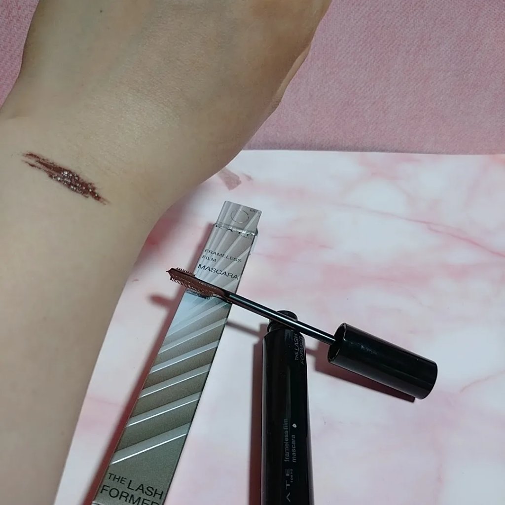 KATEのフレームレスフィルムマスカラはまたの名を美嘘マスカラ!美しい嘘、ってなんだか素敵な名前…!あまり盛った感なく、自睫毛が伸びたような自然な仕上がり。私のカラーはBR-1ブラウンなんですが、明るめのクリーミーな茶色です。瞳が明るく見える...