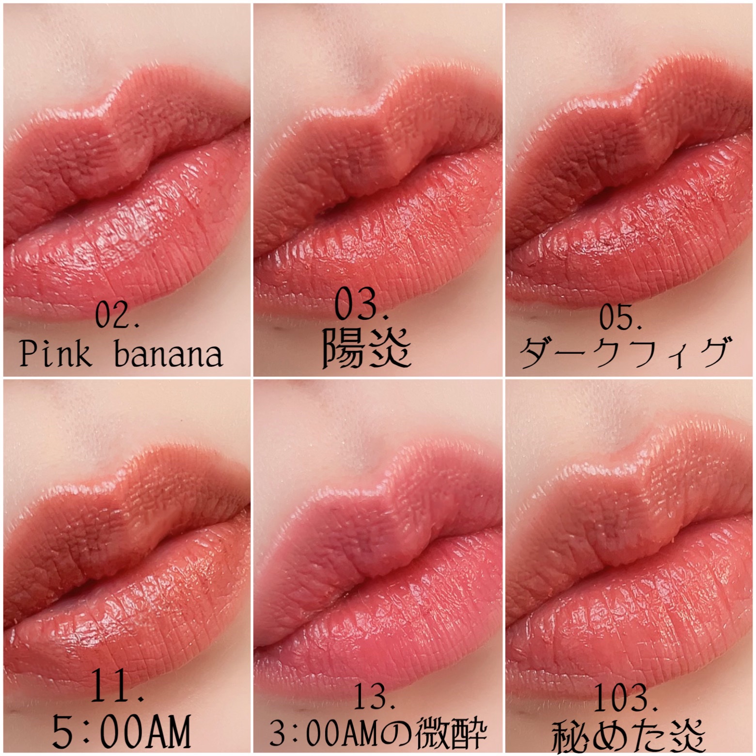 01 欲望の塊 青み寄りの明るめで澄んだピンクレッド やや鮮やかまでいけるブルベ夏、 明るさ得意なブルベ冬におすすめ! 08 モーブシャワー (WEB限定) しっかり青みの淡い青ラメ入りラベンダー 単体なら淡さ得意なブルベ夏に! ブルベ全般の重ねて青み足し要因にも◎ 15 綿雲33000ft (新色) ほんのり黄みの鮮やかめなコーラルレッド 2ndブルベでやや鮮やかまでいけるイエベ春に! 09水晶玉のマダムよりもほんのり柔らかめ◎