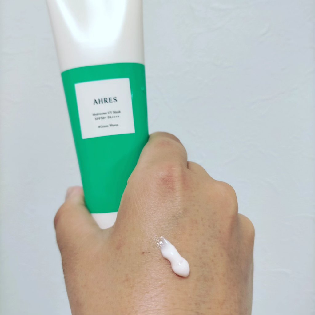 AHRES(アーレス) 「HydrectorUVMask(ハイドレクターUVマスク)」✨4,400円(税込)ハイプロテクト×心地好さを追求したUV美容液💕グリーンのシンプルなチューブ入り❣️大き目(90g)でたっぷり使えるのがうれしい😊SPF...