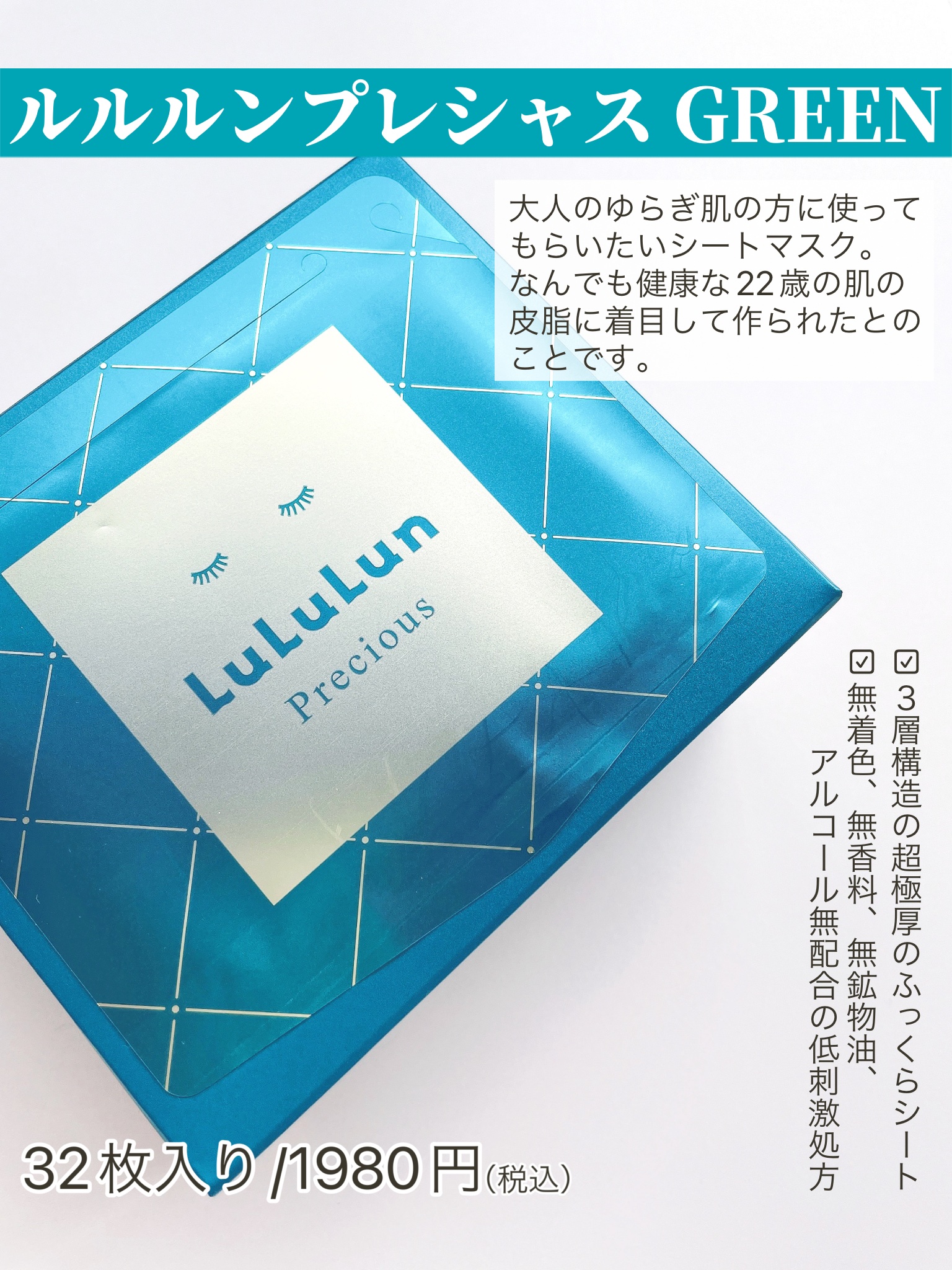 Dr.ルルルン株式会社様に商品を提供いただきました。ルルルンプレシャスGREEN(バランス)容量:7枚入(エッセンス113ml)価格:550円(税込)ルルルンプレシャスGREEN(バランス)は、崩れやすい大人の肌*に。バランスを整え、ぷるんと...