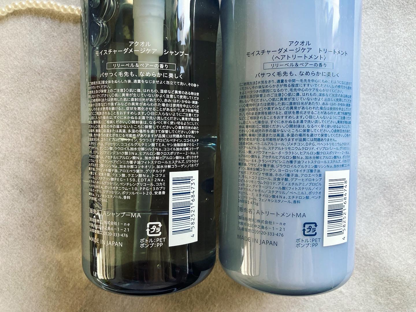 - <シャンプー 475ml> 水、コカミドプロピルベタイン、ラウラミドプロピルベタイン、ココイルメチルタウリンNa、グリセリン、ココイルグルタミン酸TEA、ヤシ油脂肪酸PEG-7グリセリル、タンニン酸、ラウロイル加水分解シルクNa、ココイル加水分解コラーゲンK、エチレンジアミンジコハク酸3Na、ヒアルロン酸クロスポリマー-2-Na、ヒアルロン酸Na、アセチルヒアルロン酸Na、加水分解ヒアルロン酸Na、ポリクオタニウム-65、クランベアビシニカ種子油フィトステロールエステルズ、ジラウロイルグルタミン酸リシンNa、加水分解コンキオリン、加水分解コラーゲン、バオバブ種子油、ワサビノキ種子油、アロエベラ葉汁、グリチルリチン酸2K、没食子酸、クエン酸、クエン酸Na、トコフェロール、ジステアリン酸PEG-150、EDTA-2Na、エチルヘキシルグリセリン、ペンチレングリコール、コカミドメチルMEA、ポリクオタニウム-10、PPG-3カプリリルエーテル、ジグリセリン、ポリソルベート20、安息香酸Na、フェノキシエタノール、香料 <トリートメント 475g> 水、ベヘニルアルコール、ジメチコン、DPG、ベヘントリモニウムクロリド、セテアリルアルコール、ステアルトリモニウムクロリド、イソプロパノール、グリセリン、タンニン酸、メドウフォーム-δ-ラクトン、ヒアルロン酸クロスポリマー-2-Na、ヒアルロン酸Na、アセチルヒアルロン酸Na、加水分解ヒアルロン酸Na、ポリクオタニウム-64、クランベアビシニカ種子油フィトステロールエステルズ、バオバブ種子油、ワサビノキ種子油、ジラウロイルグルタミン酸リシンNa、加水分解コンキオリン、加水分解コラーゲン、ヨーロッパキイチゴ種子油、アルガニアスピノサ核油、ホホバ種子油、アロエベラ葉汁、BG、トコフェロール、没食子酸、グアーヒドロキシプロピルトリモニウムクロリド、アミノエチルアミノプロピルジメチコン、ダイマージリノール酸(フィトステリル/イソステアリル/セチル/ステアリル/ベヘニル)、ポリクオタニウム-7、エチドロン酸4Na、エチドロン酸、ペンチレングリコール、フェノキシエタノール、香料