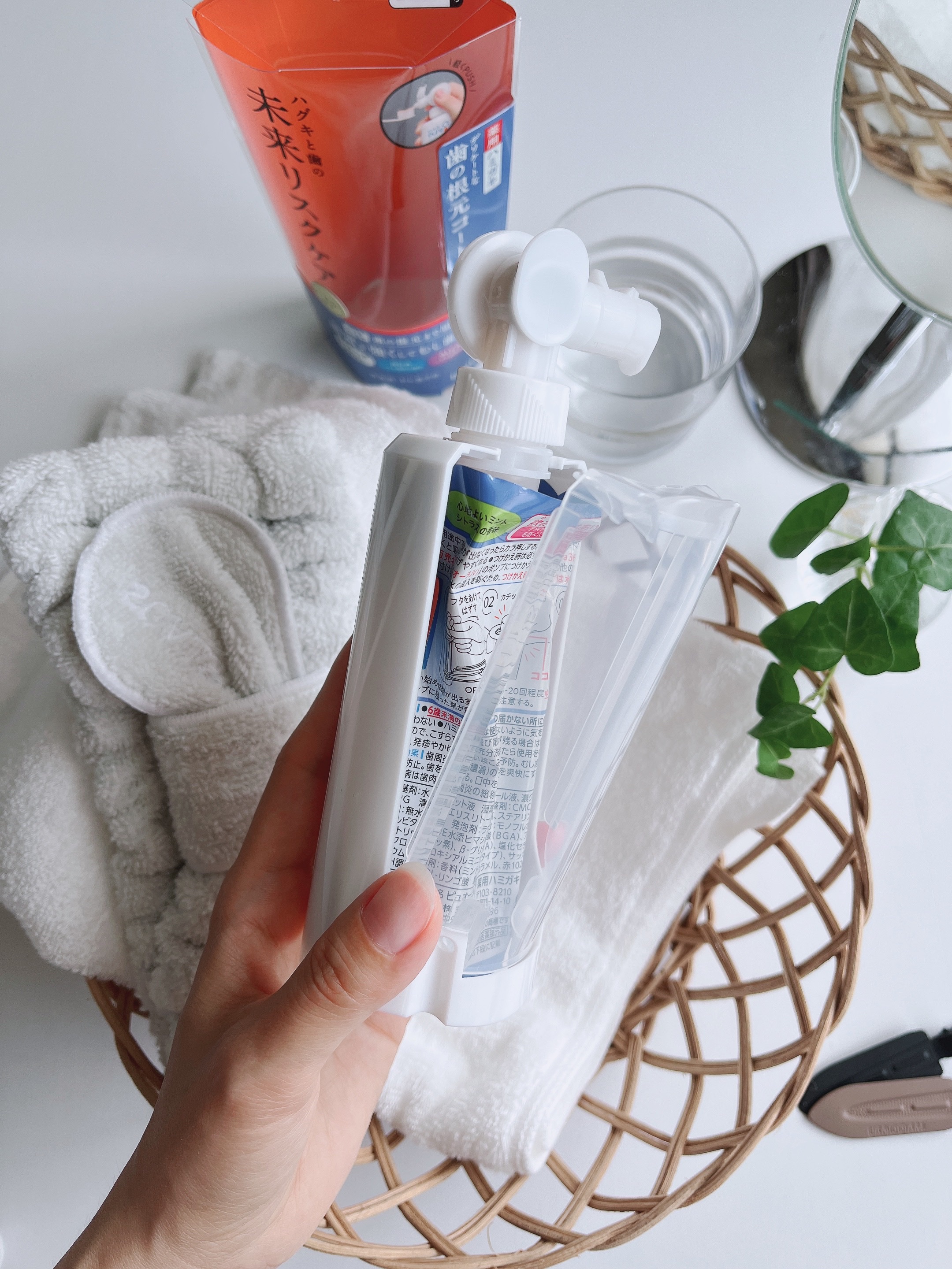 クリームで磨く新感覚はみがき粉 歯もハグキもぴったり密着してくれる濃密なねっとりクリームタイプ 泡立たないからじっくり磨ける さらにボトルがポンプタイプになっているから片手で歯磨き粉が出せるのが便利すぎた ケースがついてるからしっかり自立もできて詰め替えも簡単なのも嬉しいポイント