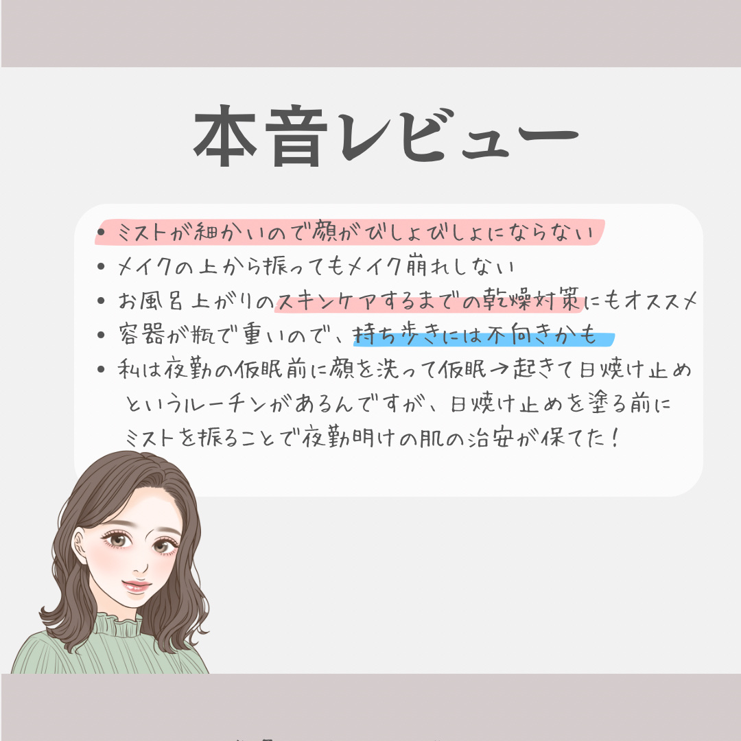 | スキンケアランキング第30位 | スプレーのキリが細かいのでべちゃっとつかず、均一にスプレーできる | 詳細を見る | |