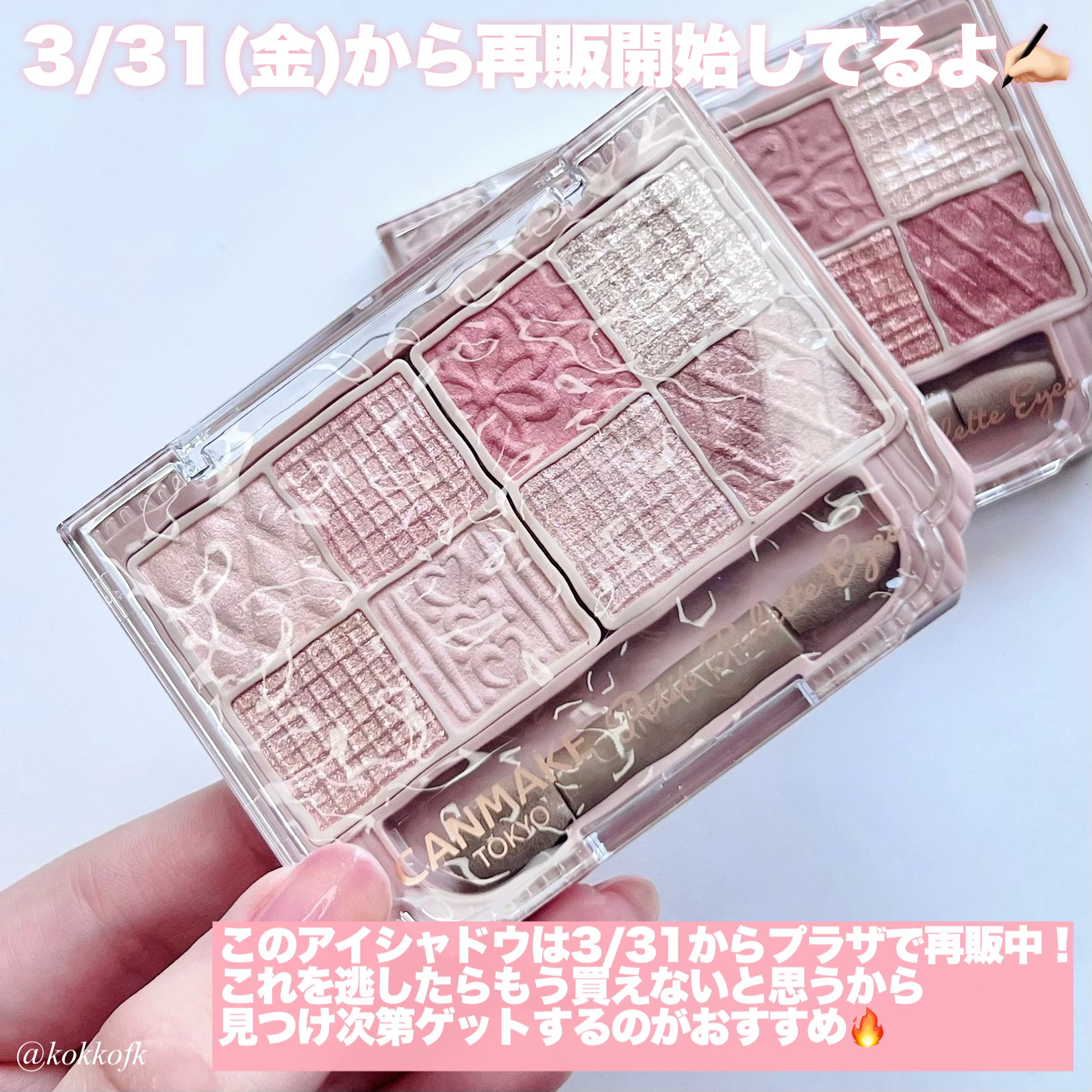 rom&nd────────────ベターザンパレット06 PEONY NUDE GARDEN (¥2900) rom&nd────────────ベターザンアイズ W03 Dry Strawberry (¥1569) HOLIKA HOLIKA────────────マイフェブムードアイパレットMOONY (¥2050) HOLIKA HOLIKA────────────マイフェブムードアイパレットPINK OLOGY (¥2050) CLIO────────────プロ アイ パレット13 PICNIC BY THE SUNSET (¥2390) PERIPERA────────────オール テイク ムード パレット04 MUTEFUL ROSE (¥1590) PERIPERA────────────オール テイク ムード パレット09 MOONLIKE LAVENDER PINK (¥1590) PERIPERA────────────インク ポケット シャドウ パレット05 TOUCHING TARO STARS (¥1190)