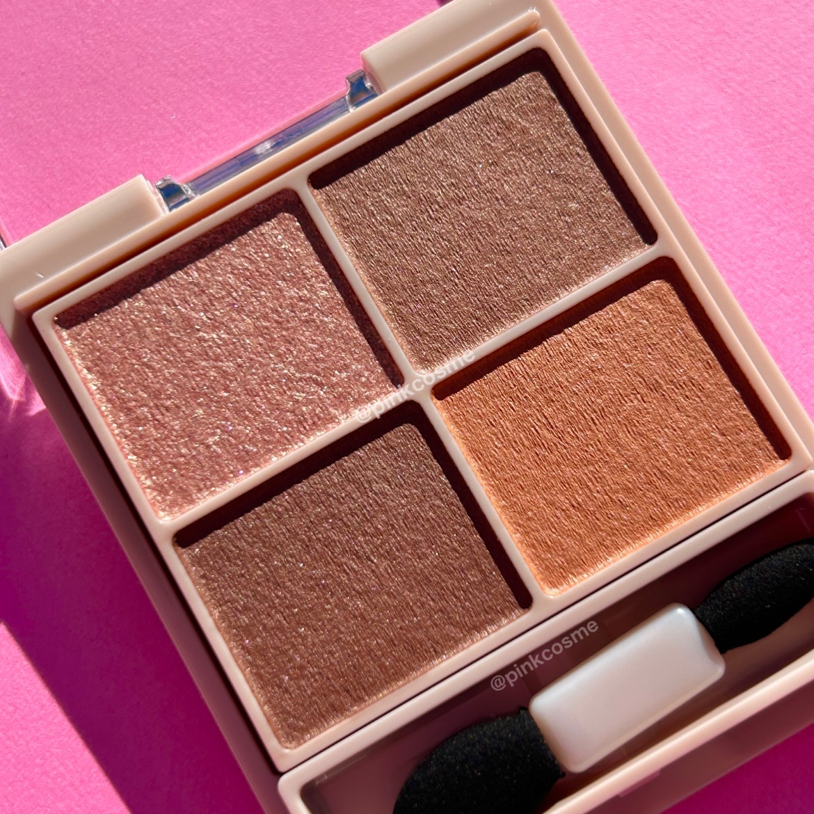 - シルキースフレアイズの姉妹品♡ 肌に溶け込むような透けマットシャドウ 透け感のある柔らかい仕上がりになるマット3色と、透け発色の繊細ラメ1色のパレットシャドウ♡ 完全マットアイや、ラメ×マットアイなど、メイクのパターンを楽しみましょう!