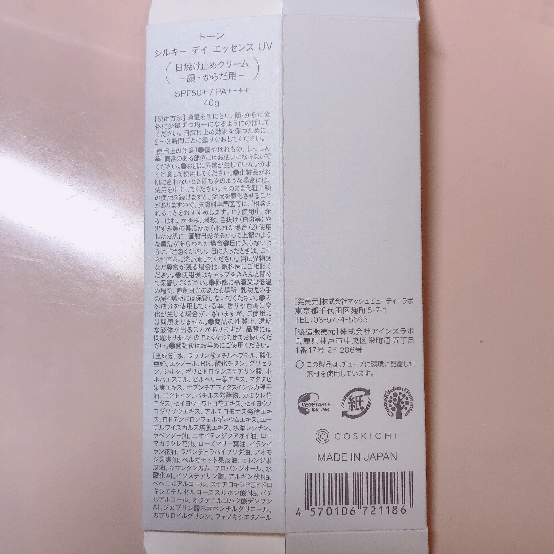 | 日焼け止め・UVケアランキング第90位 | テクスチャは水のような感じで伸びもよく、コスパも良い♡顔にも使えるしサラサラだし SPF50+ PA++++ | 詳細を見る |