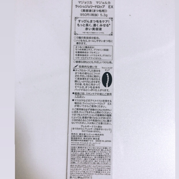 - すっぴんまつ毛をケア! ○従来の保湿成分に加え、まつ毛ハリケア成分*配合。ハリを与え、カールしやすいまつ毛に導きます。 *なつめ果実エキス、グリセリン(保湿)