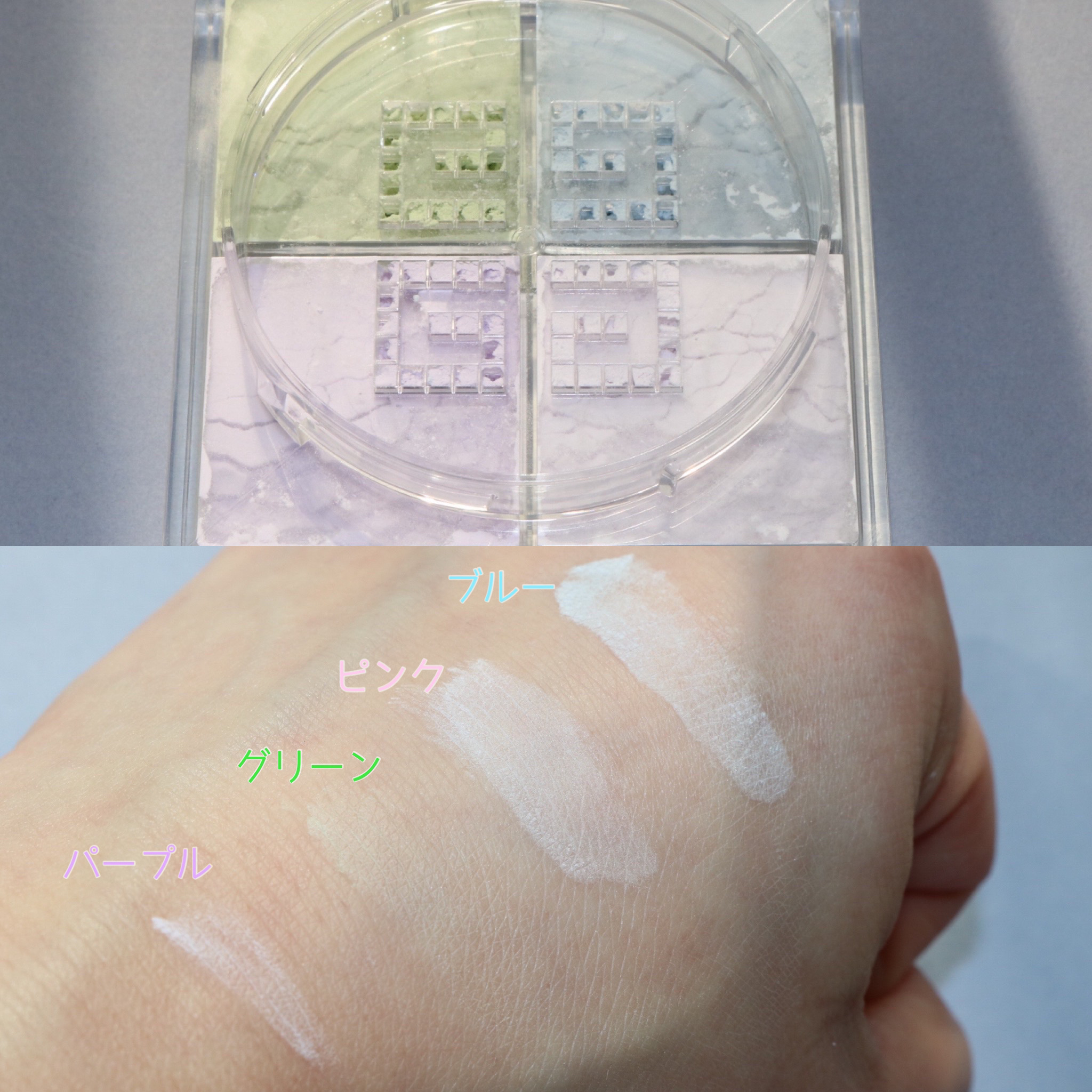 カバー力はザセムの3色コンシーラーの方がありますが、肌のトーン補正で考えるとかなり優秀✨ このパレットを使用して微調整しながらメイクをすると、肌のトーンが均一になり仕上がりが綺麗😌 肌に馴染ませる時、乾燥肌〜混合肌さんは乾いたスポンジだと乾燥が気になるかも.. 結構サラッとパウダリーな使用感なので、水に濡らしたスポンジの使用をオススメします! しっかりスキンケアで保湿したあと、湿性スポンジを使用してメイクすればパサつきや乾燥は感じませんでした✨ パレット1つで色んなところをカバーできるから、旅行やお泊まりにもオススメです☺️