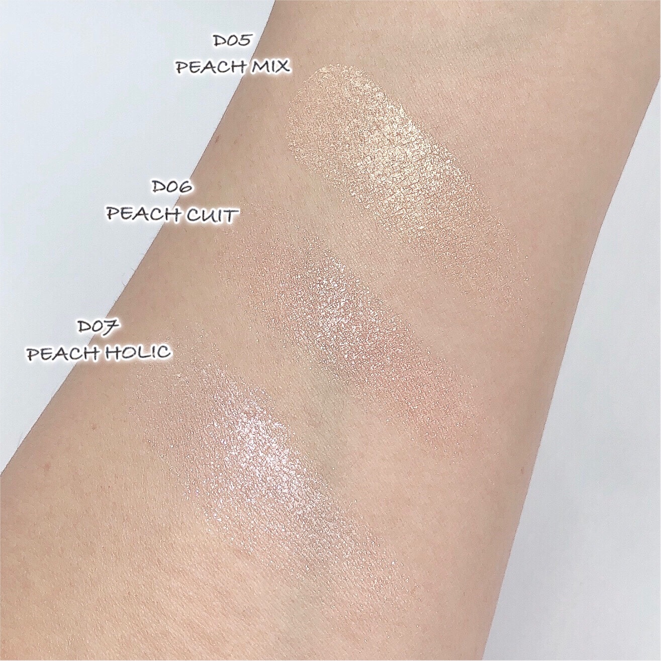 - 【全成分表示】 タルク、トリエチルヘキサノイン、リンゴ酸ジイソステアリル、イソステアリン酸水添ヒマシ油、ポリグリセリル-3ポリジメチルシロキシエチルジメチコン、ラウリン酸亜鉛、スクワラン、トコフェロール、メチルパラベン、(+/-)グンジョウ、シリカ、ホウケイ酸(Ca/Al)、マイカ、金、銀、酸化スズ、酸化チタン、酸化鉄、赤226" 【R01~R06共通】 タルク、トリエチルヘキサノイン、リンゴ酸ジイソステアリル、イソステアリン酸水添ヒマシ油、ポリグリセリル-3ポリジメチルシロキシエチルジメチコン、ラウリン酸亜鉛、スクワラン、トコフェロール、メチルパラベン、(+/-)グンジョウ、シリカ、ホウケイ酸(Ca/Al)、マイカ、酸化スズ、酸化チタン、酸化鉄、赤202、赤226" 【D01~D04共通】 ジメチコン、リンゴ酸ジイソステアリル、タルク、アルキル(C26-28)ジメチコン、(ジメチコン/ビニルジメチコン)クロスポリマー、スクワラン、カルナウバロウ、PEG-10ジメチコン、ポリメタクリル酸メチル、(+/-)グンジョウ、コンジョウ、ホウケイ酸(Ca/Al)、マイカ、酸化チタン、酸化鉄、水酸化Al" 【F01~F06共通】 ジメチコン、アルキル(C26-28)ジメチコン、(ジメチコン/ビニルジメチコン)クロスポリマー、リンゴ酸ジイソステアリル、スクワラン、PEG-10ジメチコン、ポリメタクリル酸メチル、カルナウバロウ、(+/-)グンジョウ、マイカ、黄4、酸化チタン、酸化鉄、水酸化Al、赤226" 【G01~G04共通】 タルク、合成フルオロフロゴパイト、トリエチルヘキサノイン、リンゴ酸ジイソステアリル、イソステアリン酸水添ヒマシ油、スクワラン、トコフェロール、ラウリン酸亜鉛、メチルパラベン、(+/-)マイカ、酸化チタン、酸化鉄、赤226