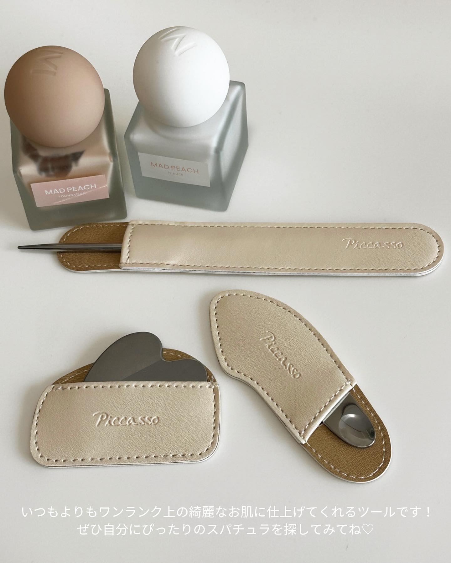 - 薄いレイヤーリングと極強の密着を誇る プロアーティストの道具、メイクアップスパチュラで ベース製品を塗布した後、スポンジを活用した 手軽な仕上がりまで体験してみてください。 ⠀ 持続力と密着力ともに高く、 手軽な使い方と衛生管理で 誰でも簡単に、理想的なベースメイクを完成 ⠀ 薄くて滑らかなベース作りの簡単なツール ピカソメイクスパチュラ