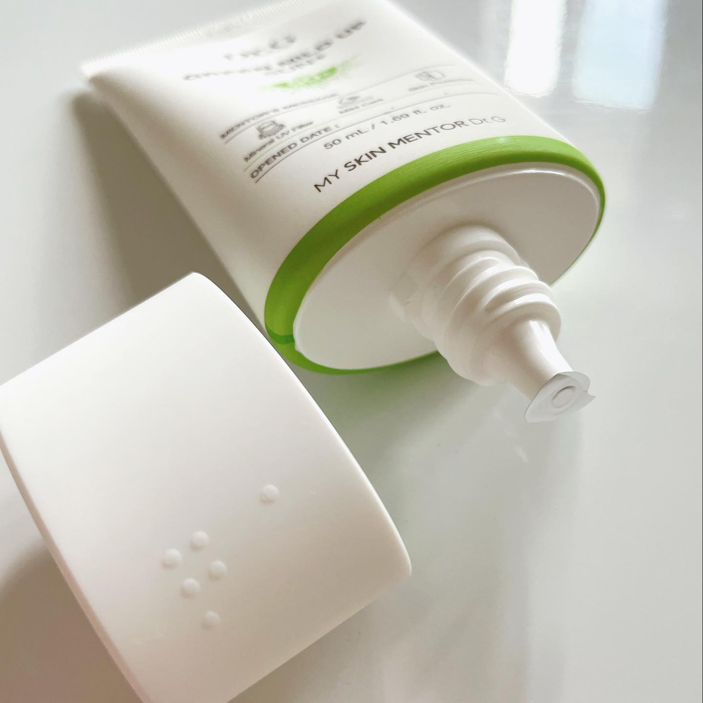 柔らかいクリーム処方でベタつかずにスーッと伸びる日焼け止めです🤭 🍏SPF50+・PA++++🍏 これは非常に使いやすい❣️肌荒れも起こらないし、何ならトーンアップしたような感じでお肌も潤います🙌 紫外線だけでなく、UV-A、UV-Bのほかにブルーライト、赤外線、アンチポリューションもカット✂️肌鎮静に効果的なツボクサエキス🌿と紫外線からお肌を守るピクノジェノール配合☀️ スキンケアしながら日焼け止めできるのが嬉しいですね🤭❣️