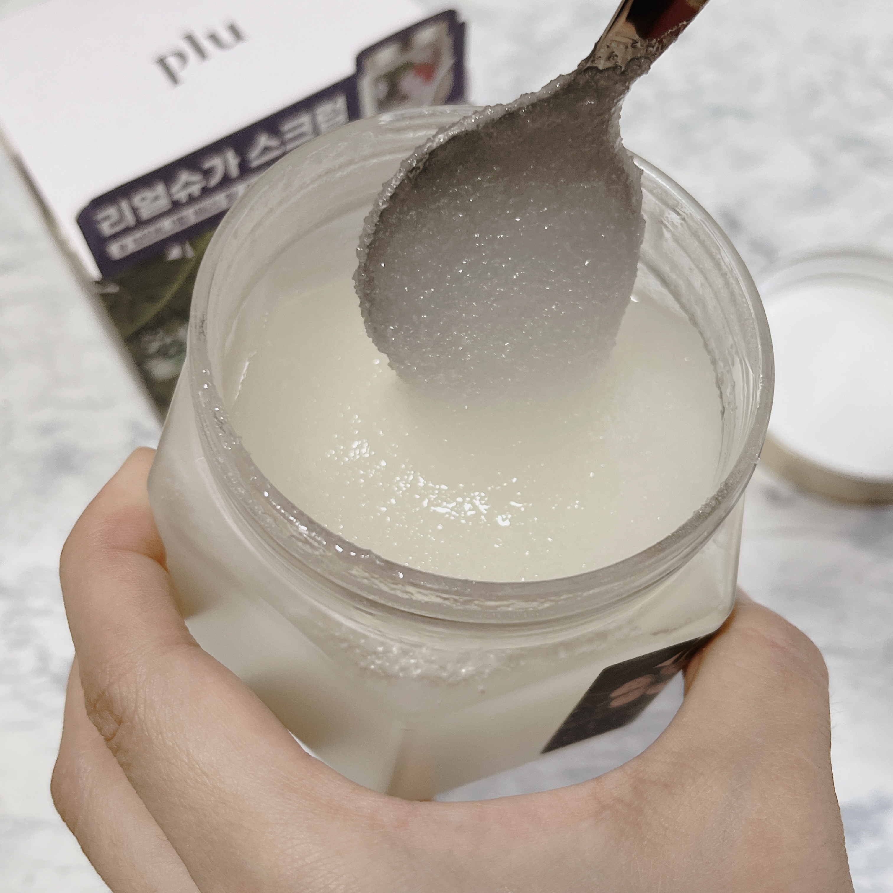 plu(プル)パフュームドボディスクラブホワイトブラン✨ボディスクラブで角質ケアと保湿ケアを同時に♪乾燥してゴワついた肌に潤いを与えるシーソルトスクラブ×植物由来オイルで出来たヴィーガンボディスクラブ💡かわいい♡高級感があるデザインガラスの瓶...