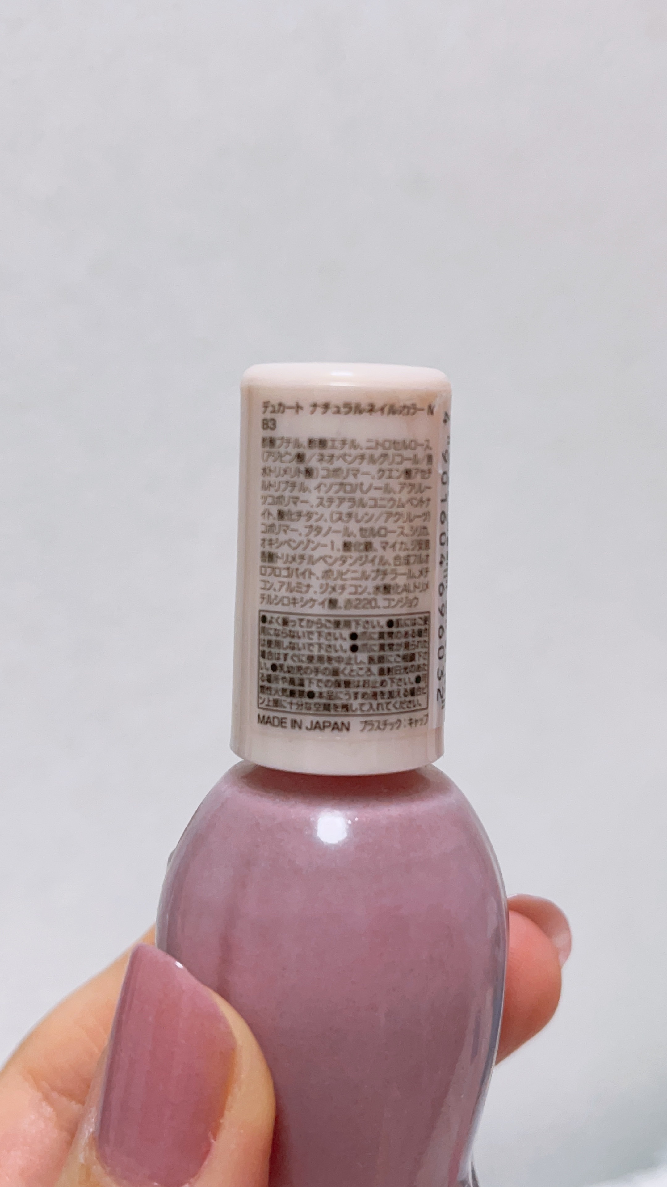 - 季節に関係なく楽しめる使いやすいヌーディーカラーが揃ったネイルカラーです。 デュカート ナチュラルネイルカラー N の色のこだわり ●爪先をナチュラルに、そして 美しく見せる ●1度塗りでシアー、2 度塗りで見たまま 発色。 デュカートのカラーはあえて2 度塗りをすることで艶やかで美しい仕上がりになるよう計算して調色しています。 その日の気分や時間によって、1 度塗り、 2 度塗りそれぞれの仕上がりを楽しむことも。 日本人の肌色にあった絶妙なくすみ加減で、あなたにぴったりのカラーがきっと見つかります。