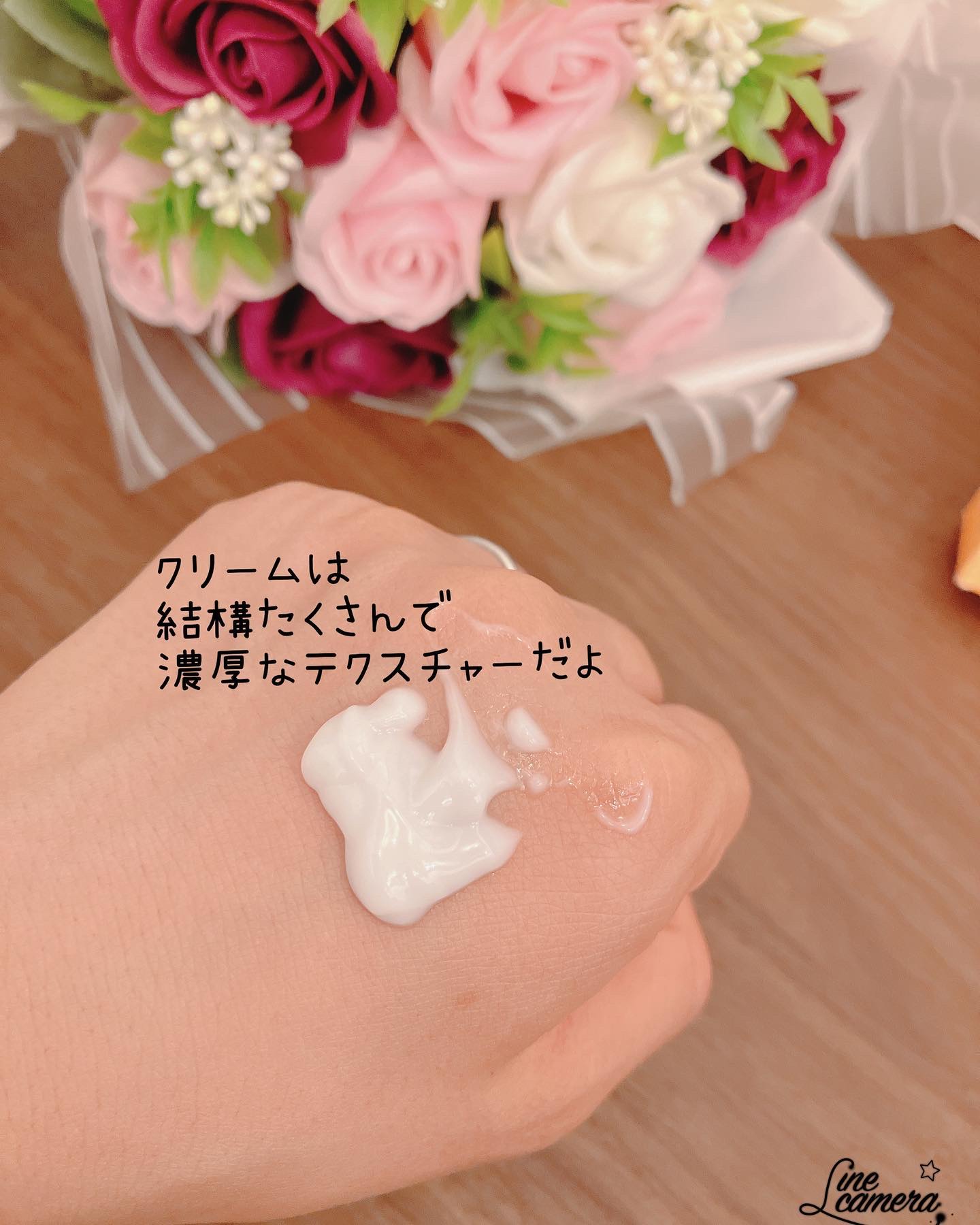 女性に嬉しいサフランエキスと和漢植物エキスを配合してて自然由来のうるおいをお肌に余すことなく角質層のすみずみまでアプローチ👌🏻 ̖́- 美容液もヒタヒタで密着してくれるしクリームもベタつかなくてするする伸びるタイプだから保湿されて個人的には肌がモチモチなった気がしました🫶🏻 美容液とケアクリームのダブル効果で保湿されるのがありがたい✨