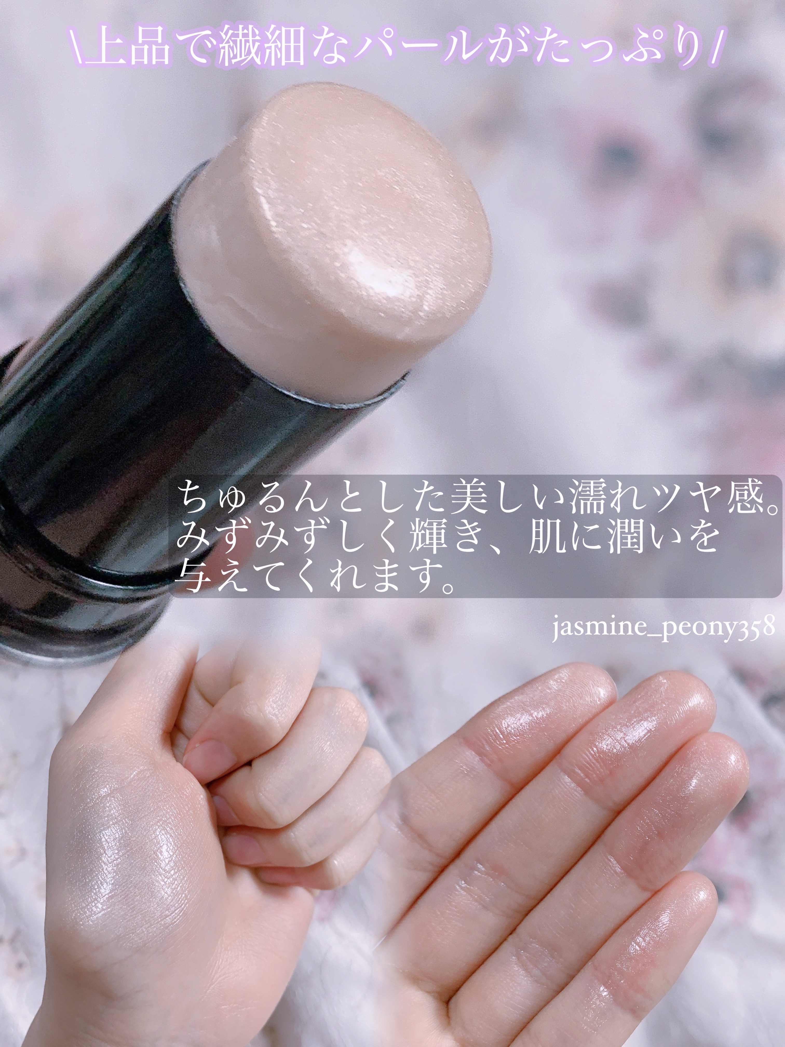 - 肌に濡れたようなつやをプラスするグロウ スティック。頬、まぶた、唇など、輝かせたいところにのせるだけ。メークアップの可能性がぐっと広がります。