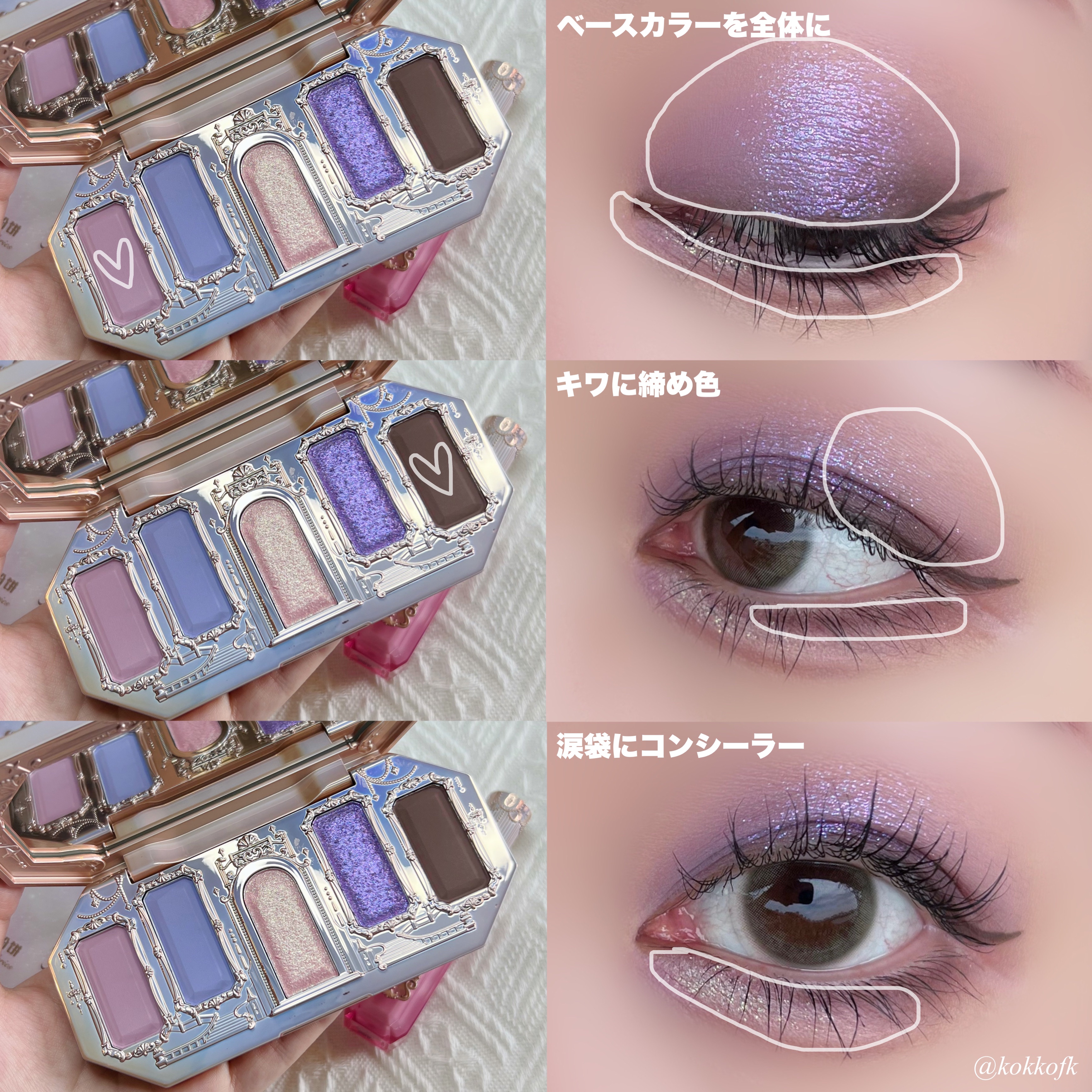 W デイリームードアップパレット01 ソフトモーブピンク (¥2420) プロ アイ パレット13 PICNIC BY THE SUNSET, グラムチェンジマルチパレット04 ユニコーンピンク (¥1890) グリッターぺディアアイパレットN°4 オールラベンダーフォグ (¥2950) シャドウパレット16 バイオレットニット (¥3610) ベターザンパレット06 PEONY NUDE GARDEN, 09 DREAMY LILAC GARDEN (¥2900)