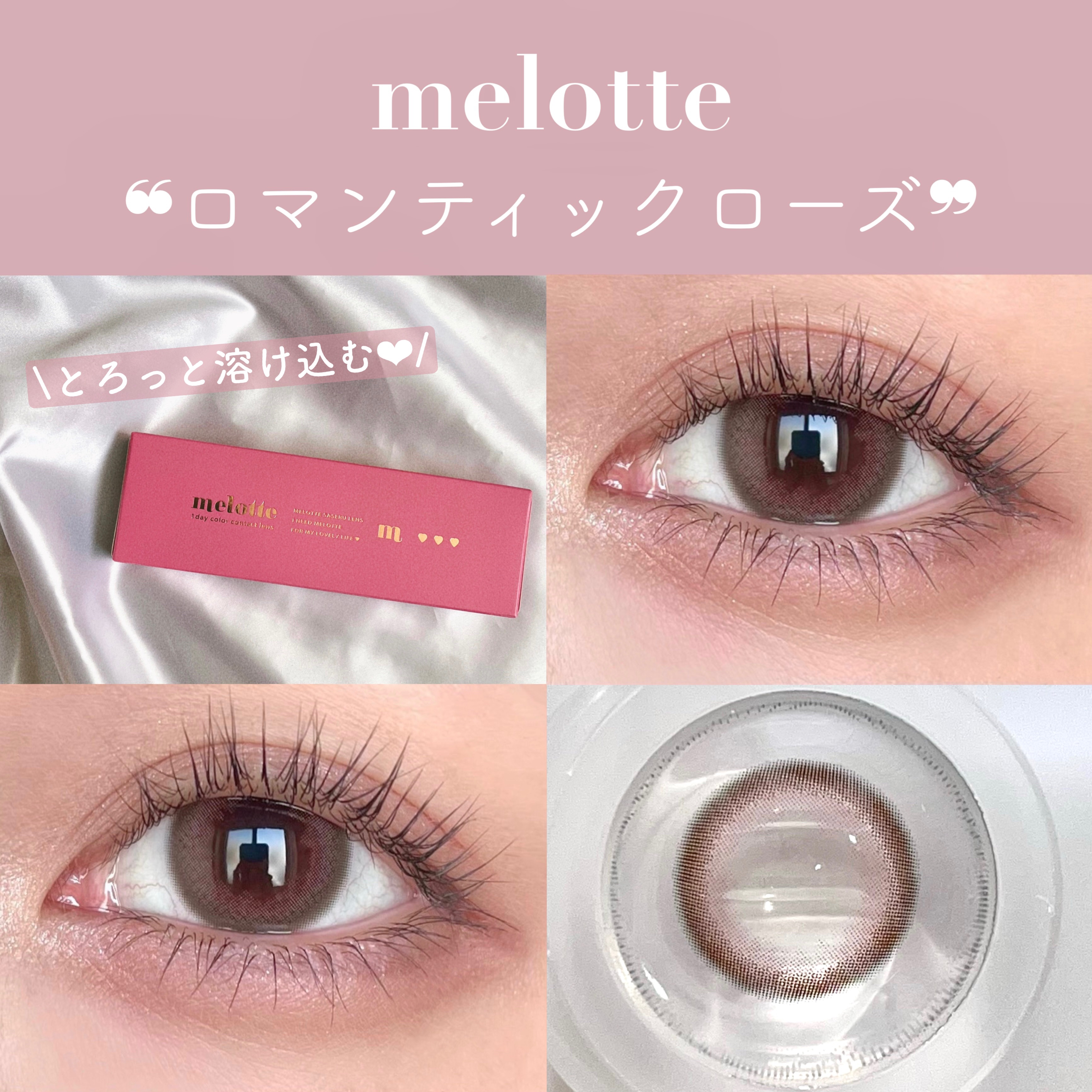 melotteメロット 1dayロマンティックローズ¥1,793DIA14.2mmBC8.6mm着色直径13.3mm含水率38%UVカット✔︎ほんのりローズの色味♡✔︎ナチュラルで使いやすいデザイン♡✔︎サイズは少し大きめだと思う。ローズの色...