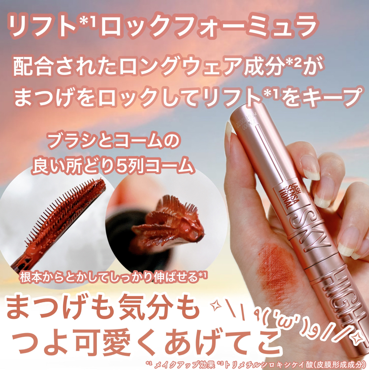 - 根元からとかしてキレイなぱっちりロングに(*1)! コームがブラシのように5列のアーチ状に並んで、とかしながら上げて伸ばせる(*1)! まつ毛リフト、1日中(*2)キープ! *1 メイクアップ効果による印象。 *2 メイベリン ニューヨーク調べ。個人差があります。