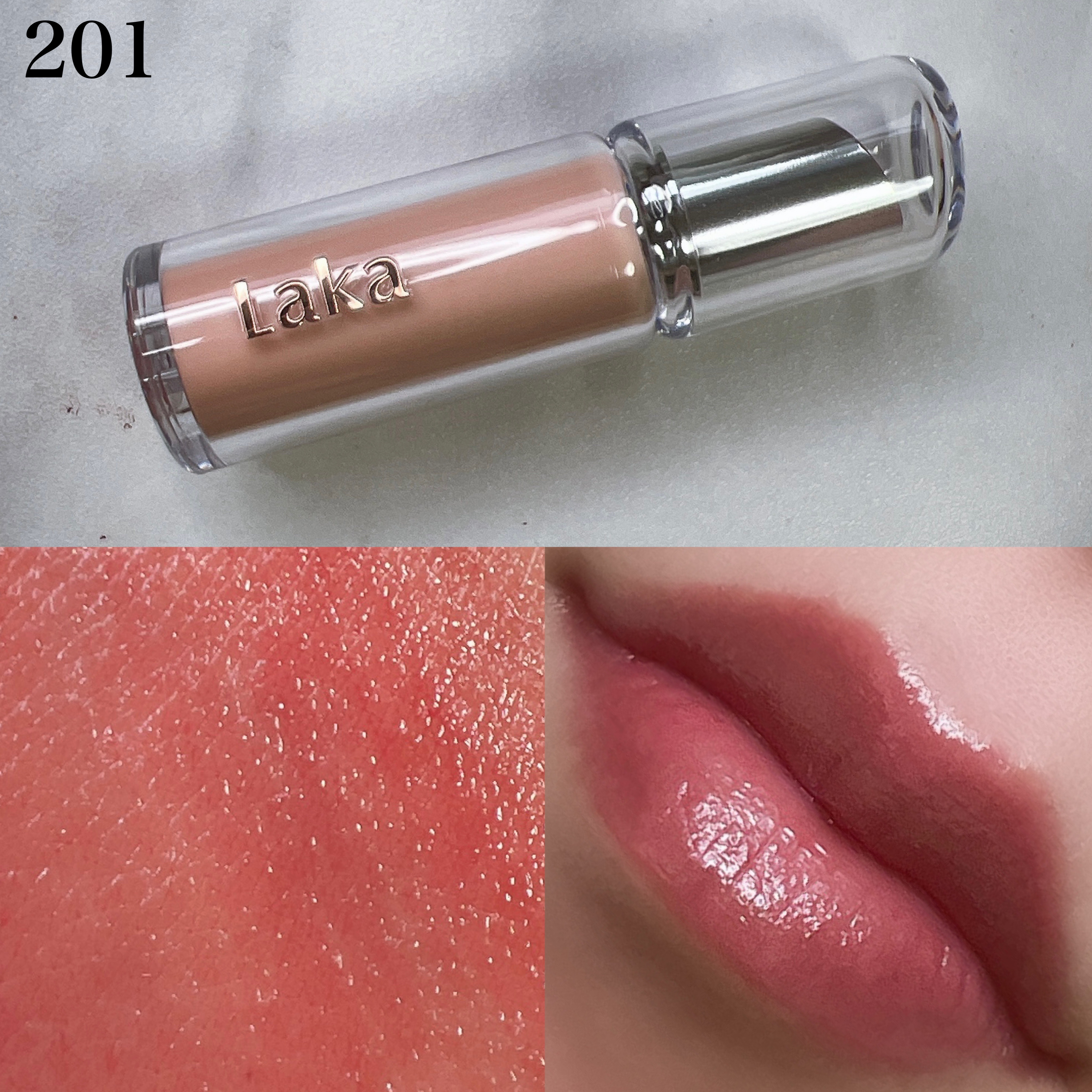 - Point1 透き通った気品が感じられるカラー ユニークなヌードカラーから自然なニュートラルカラー、深くて密度のあるポイントカラーまで、さまざまな好みに合わせた幅広いカラーバリエーション。それぞれのカラーが持つ明度や彩度に合わせて透明感を細かく調整しているため、グラデーションリップやオーバリップなど、プロが施したようなさまざまなリップメイクが楽しめます。また、夕方の暗い空間や、室内の光の下でも、唇本来の色にリップスティックのカラーが馴染み、水彩画のようなナチュラルな発色で、自然な血色感のある唇に演出します。 Point2 光に包まれたガラス玉のようなきらめき Lakaならではの「ボンディンググロウ」フォーミュラで、唇に触れた瞬間、体温でやさしく溶けていくようなテクスチャー。しっとりと馴染んで密着しながら唇をコーティングしてくれます。高い屈折率で光を強く反射させるハイシャインオイルコンプレックスを配合し、光沢感のある生き生きとしたリップカラーを実現しました。