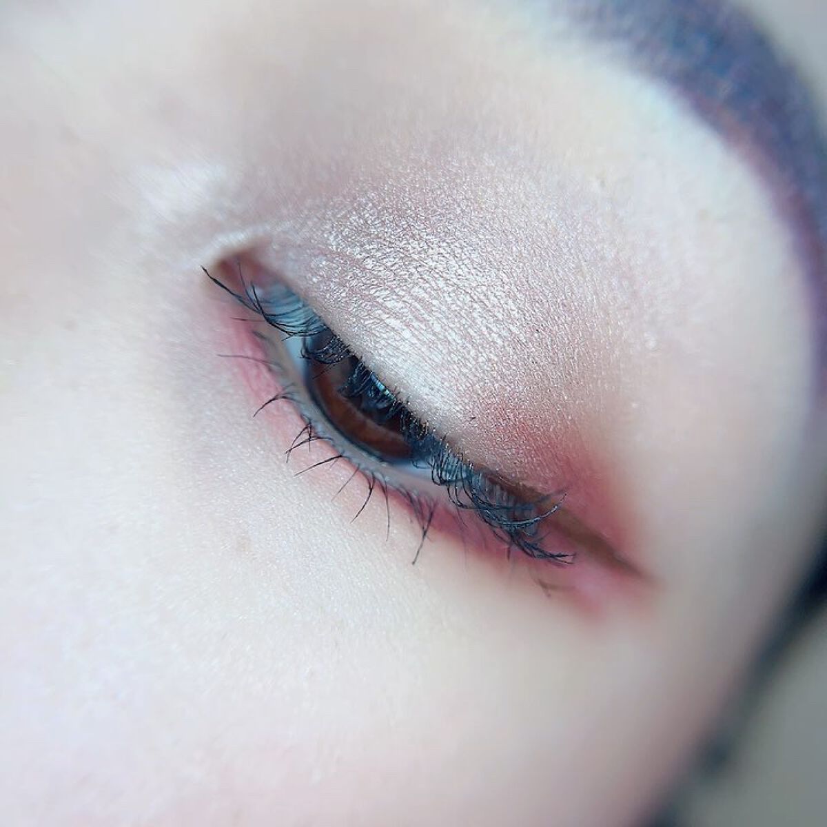 ベースに右上、目頭から黒目上に真ん中、黒目〜目尻に右下を、左上を目頭にくの字に塗ってもらいました✨ ピンクサクラよりもクールな感じで、目で見た色より私の肌では紫っぽく発色しました😍 上2つはラメはぎっしりでときめく💓 ブラウンメイクがとても苦手だけれどこれならブラウンメイク出来そう👌(かなり紫寄りですが) くすみ感は強いので苦手な方は厳しいかも…(特に真ん中) クールな印象になるので大人顔さん向けor大人顔になりたい方向けのイメージです✨