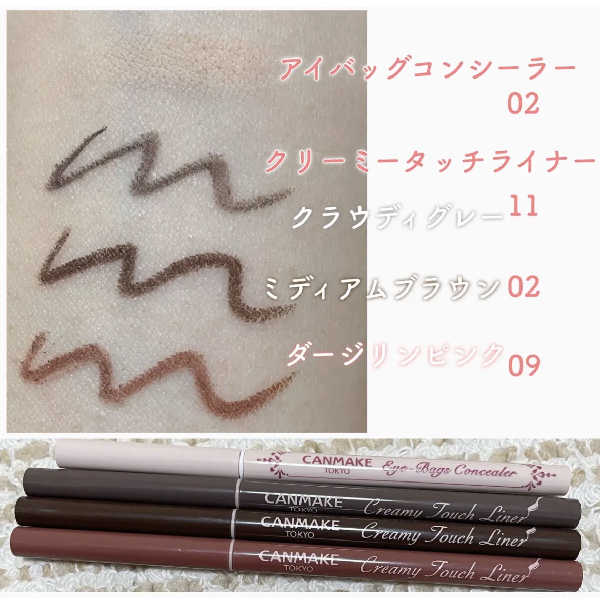 クリーミータッチライナーといえばこの“とろける”ような柔らかい描き心地!🎀 1.5mmの極細ジェルライナーで肌に負担をかけずにスルスル引くことが出来ます◎◎ 好きすぎてもう何本リピートしたか分からない...むしろこれがないとメイクが完成しないくらい必需品です!🙌🏻 《 15 カプチーノピンク🩰 》 ミルクを溶かしたようなクリーミーな白みブラウンに淡いピンクがプラスされたような色味が可愛すぎる...!! アイシャドウは淡いベージュ系を薄く全体に塗って、15 カプチーノピンクを上下のアイラインとして使って、バーガンディのマスカラと合わせたメイクがあまりにも好き....儚い系になれます...。 11のクラウディーグレーとすごく相性がいいので合わせて使うのもとってもおすすめ🫶🏻
