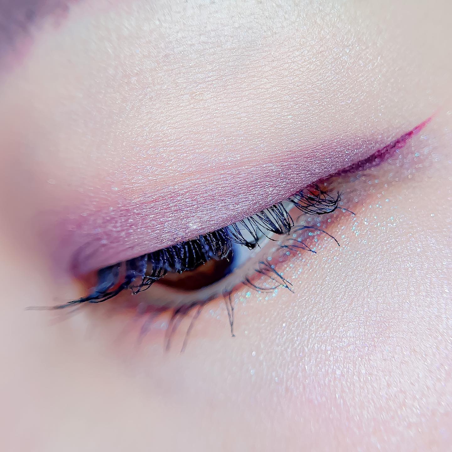 ピンクにグレージュも良いですね👌💗 今日は可愛らしい感じにしてみました💕 上下瞼黒目〜目頭側にラメを塗ってキラキラさせております🤩 目尻はマットのピンクを濃いめに重ねて💗 グレージュのアイライナーと相性◎
