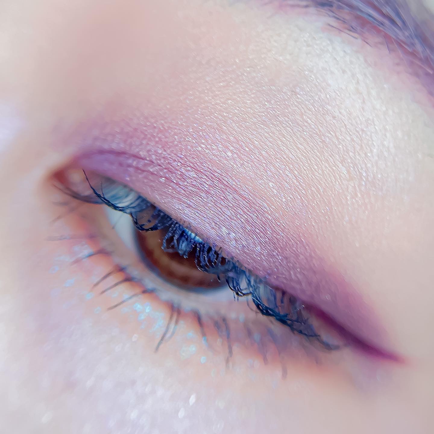 ベースに右上、目頭から黒目上に真ん中、黒目〜目尻に右下を、左上を目頭にくの字に塗ってもらいました✨ ピンクサクラよりもクールな感じで、目で見た色より私の肌では紫っぽく発色しました😍 上2つはラメはぎっしりでときめく💓 ブラウンメイクがとても苦手だけれどこれならブラウンメイク出来そう👌(かなり紫寄りですが) くすみ感は強いので苦手な方は厳しいかも…(特に真ん中) クールな印象になるので大人顔さん向けor大人顔になりたい方向けのイメージです✨
