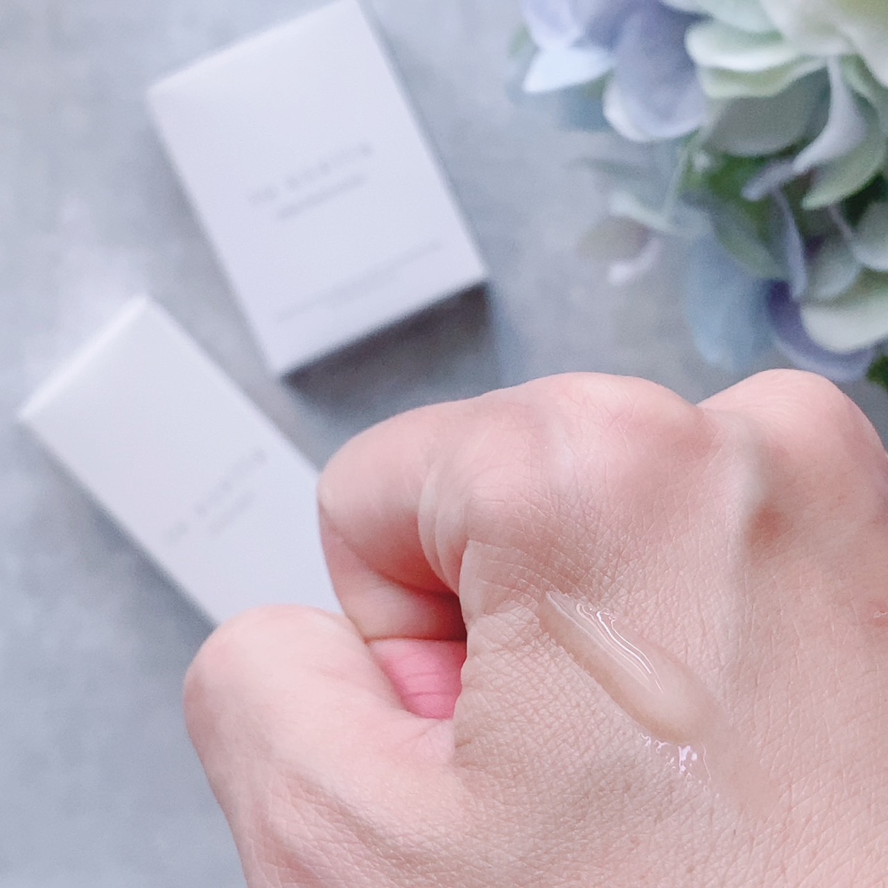 ぷるんぷるんのゼリーのようなジェル状のテクスチャーは、少し硬めなので液ダレせずに使えるのでお肌に伸ばしやすい✨ ベタベタすることなく使えて、さっぱりとした使い心地なので他のスキンケアと併用したり、気になる箇所には重ね付けしたりして使えます🌿 このオールインワンゲル1つで、基本的なスキンケアができるので忙しい朝にも嬉しいアイテムです✨