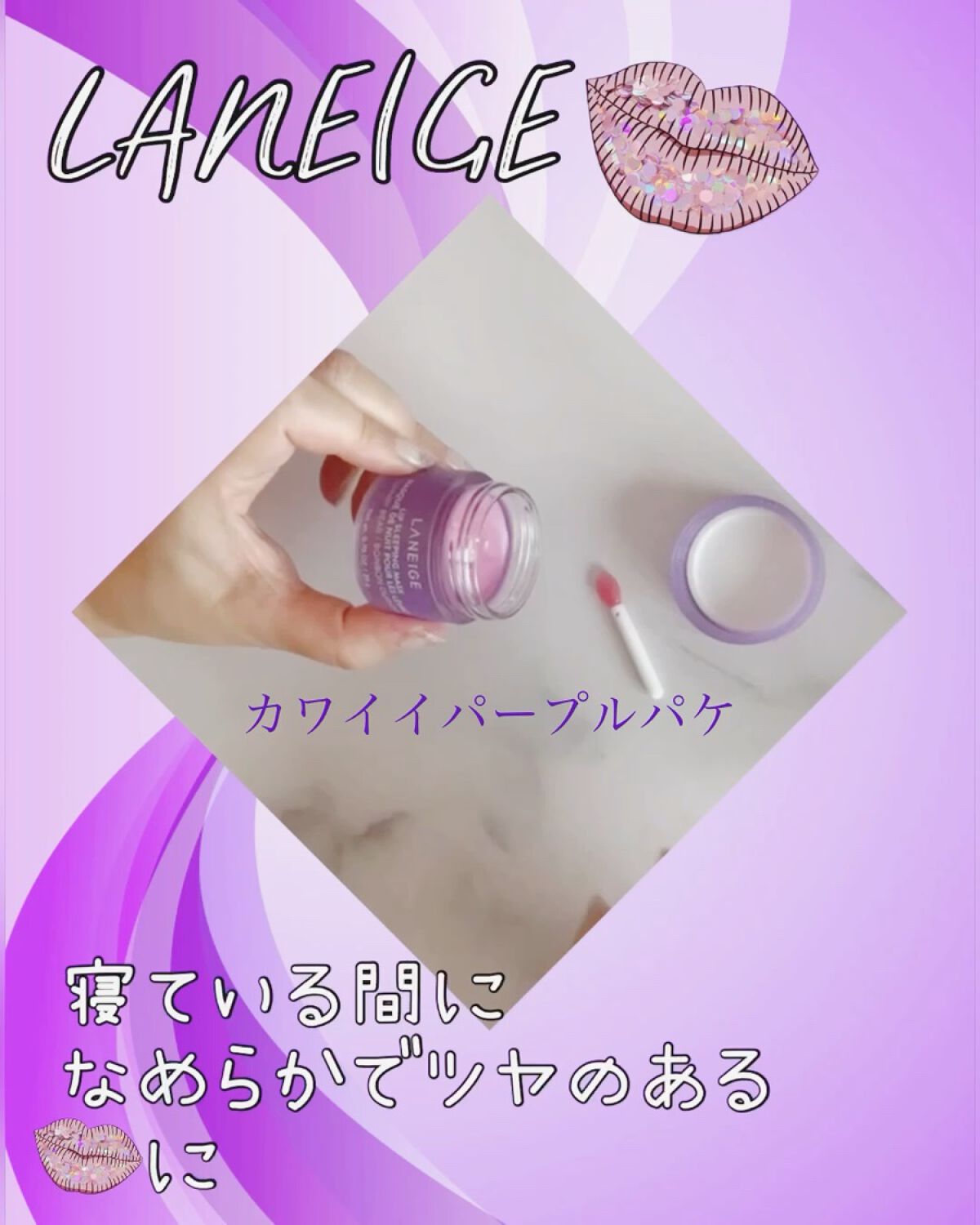 - 寝ている間にケアしてふっくらぷるぷるにうるおった唇へ。 2015年の初代発売以降、世界で2秒に1個売れている*¹LANEIGE大ヒットシリーズ *¹ 2024年グローバル販売実績 1.角質にアプローチするBerryFruitComplex (ベリーフルーツコンプレックス)*²が、 寝ている間に気になる乾燥や角質にうるおいを与え、つやのあるふっくらとうるおった唇に仕上げます。 *²ザクロ果実エキス、ブドウ果実エキス、ラズベリー果実エキス 2.ココナッツオイル(ヤシ油)を配合で、うるおいをあたえ睡眠中の乾燥を防ぎます。 3.今夜はどんな気分?5つのフレーバーから選べるワクワク感。 ■テクスチャー:やさしく馴染むなめらかなバームタイプ ■アレルギーテスト済み*³ *³全ての方にアレルギーが起こらないということではありません。 ■使用方法 寝る前に唇にたっぷり塗り、そのままお休みください。 翌朝、軽くティッシュオフします。付属のスパチュラで塗ることで、より唇の角質に馴染みやすくなります。 日中のリップトリートメントにも使用できます。
