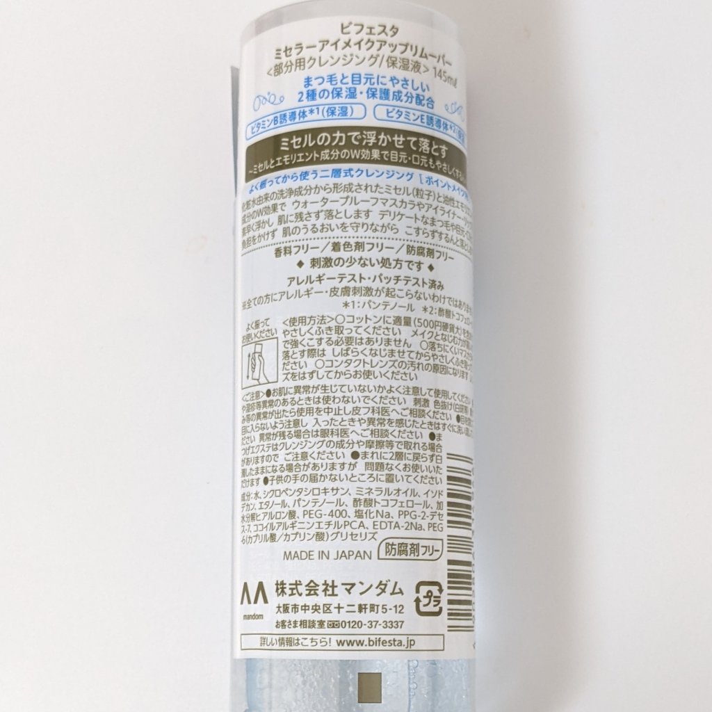商品詳細情報ビフェスタ ミセラーアイメイクアップリムーバー