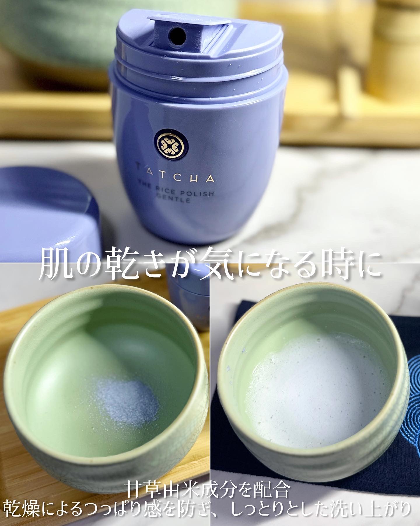毎日使えるご褒美洗顔\TATCHAライスポリッシュジェントル/古来からの日本の美容を尊重し、日本の美意識と原料がたっぷり詰まったタッチャの洗顔パウダーころんとした和を感じる容器も可愛すぎる使い方は簡単らお水で溶かすだけあっという間にふわふわの...