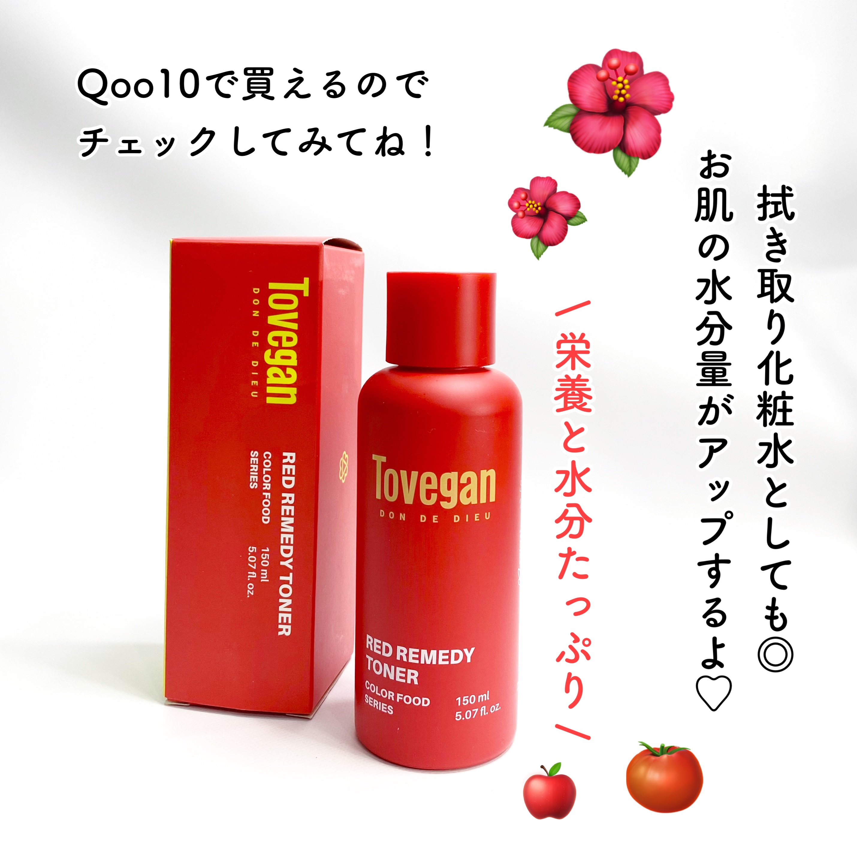 - 精製水の代わりにハイビスカスエキス*が83.9%も配合した赤ちゃんのようなゆでたまご肌を目指せる化粧水です。さっき洗顔したかのような肌の角質層までしっとり潤わせてくれます。ハイビスカスやトマトをイメージさせるリコピンカラーの赤みがあるトナーです。拭き取り化粧水として角質ケアもしていただけます。弱酸性で、敏感肌さんもお使いいただけます! *保湿成分
