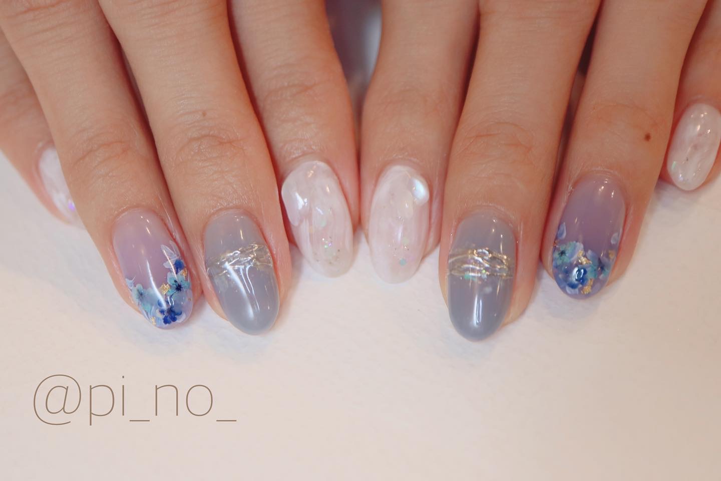 氷のようなうるうる🧊指によってグラデーションの深さを変えてニュアンス風のご希望でした☺︎そして凸凹粘土ジェル+パウダーでうるうる🧊風に✨冬ならではで素敵でした^_^いつもありがとうございます!#氷ネイル#冬ネイル#綾瀬ネイルサロン#綾瀬#都内...