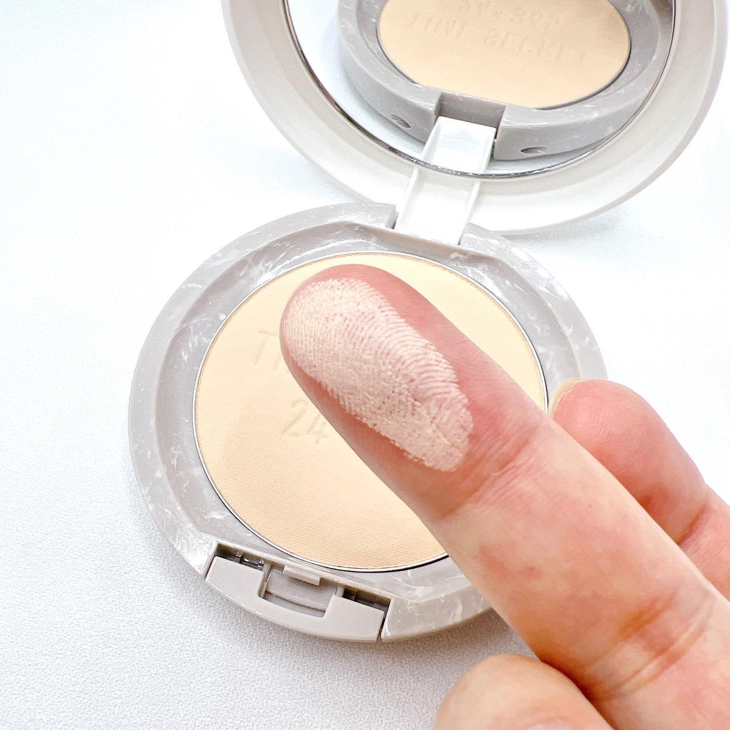 肌荒れまでケアするファンデ級カバー力 💟お肌に優しいミネラルパウダー ふわっと高カバーのプレストパウダー🫧 厚塗り感もなく塗った後はサラサラ肌に 肌荒れ防止成分グリチルレチン酸ステアリル配合でゆらぎ肌でも安心して使用できます😊