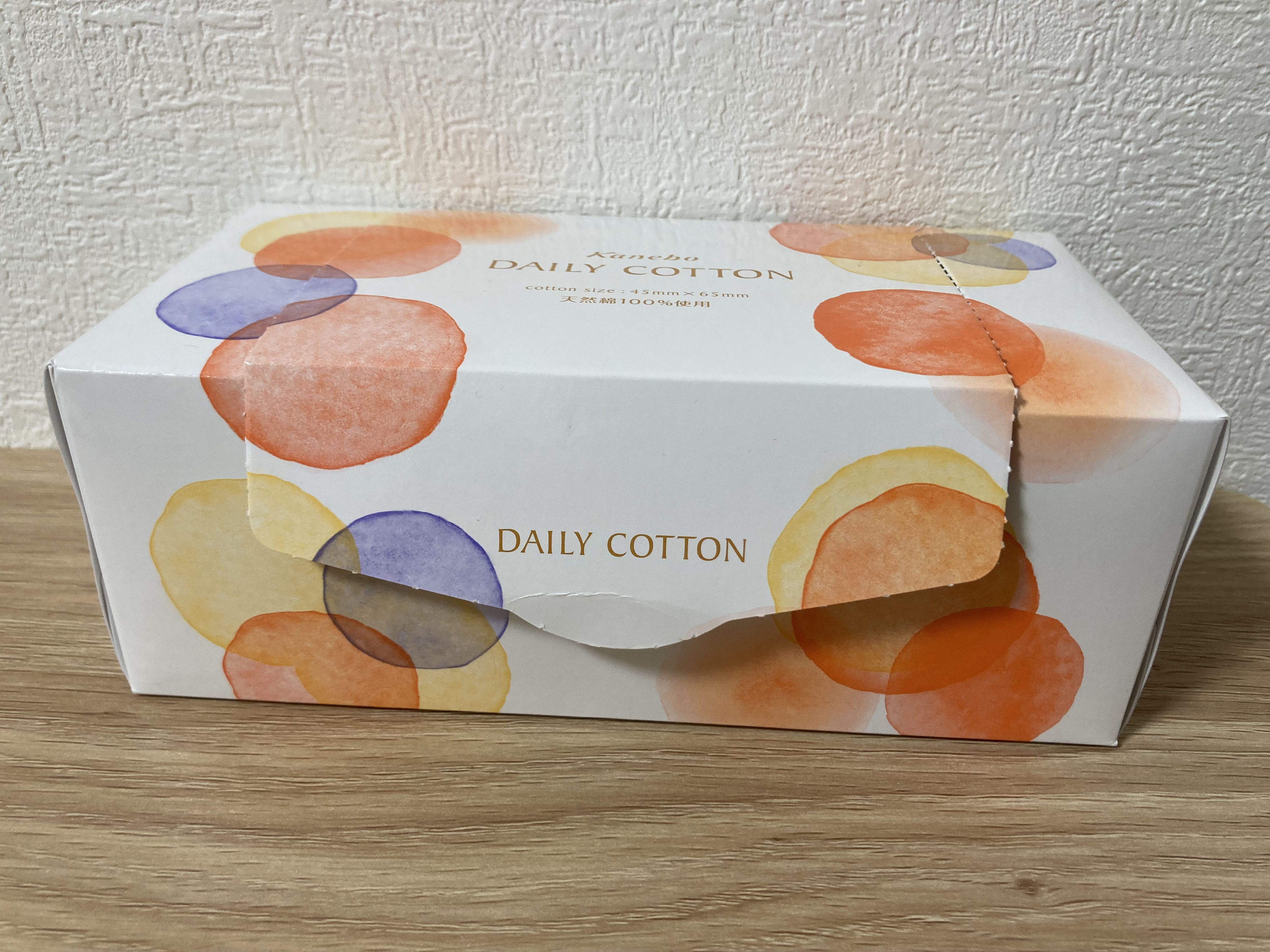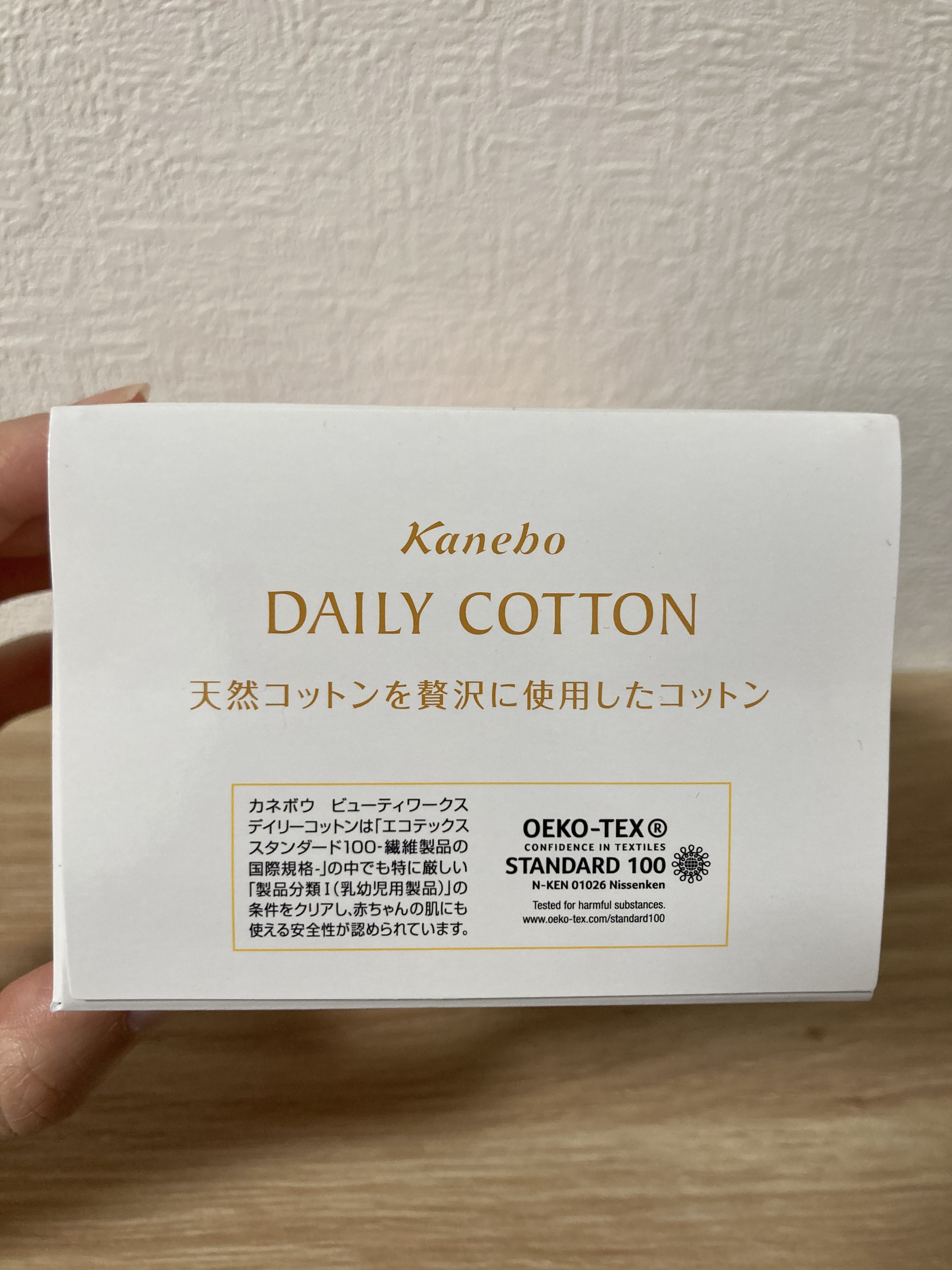天然コットンを贅沢に使用したコットンで、三層構造で、化粧水などの含みも良く、毛羽立ちもなく、なめらなかな使い心地です! 三層構造ですが、分厚さを全く感じずサイズも通常サイズで、デイリーコットンと名前がある通り普段使い、日常使いしやすいです。 ただ、、コットンが縦に入っていて、正直取り出しにくいです。普段使用してる資生堂のコットンみたいに横に入っていて上から取れるようになっているとより使いやすいのにーと思ってしまいました💦
