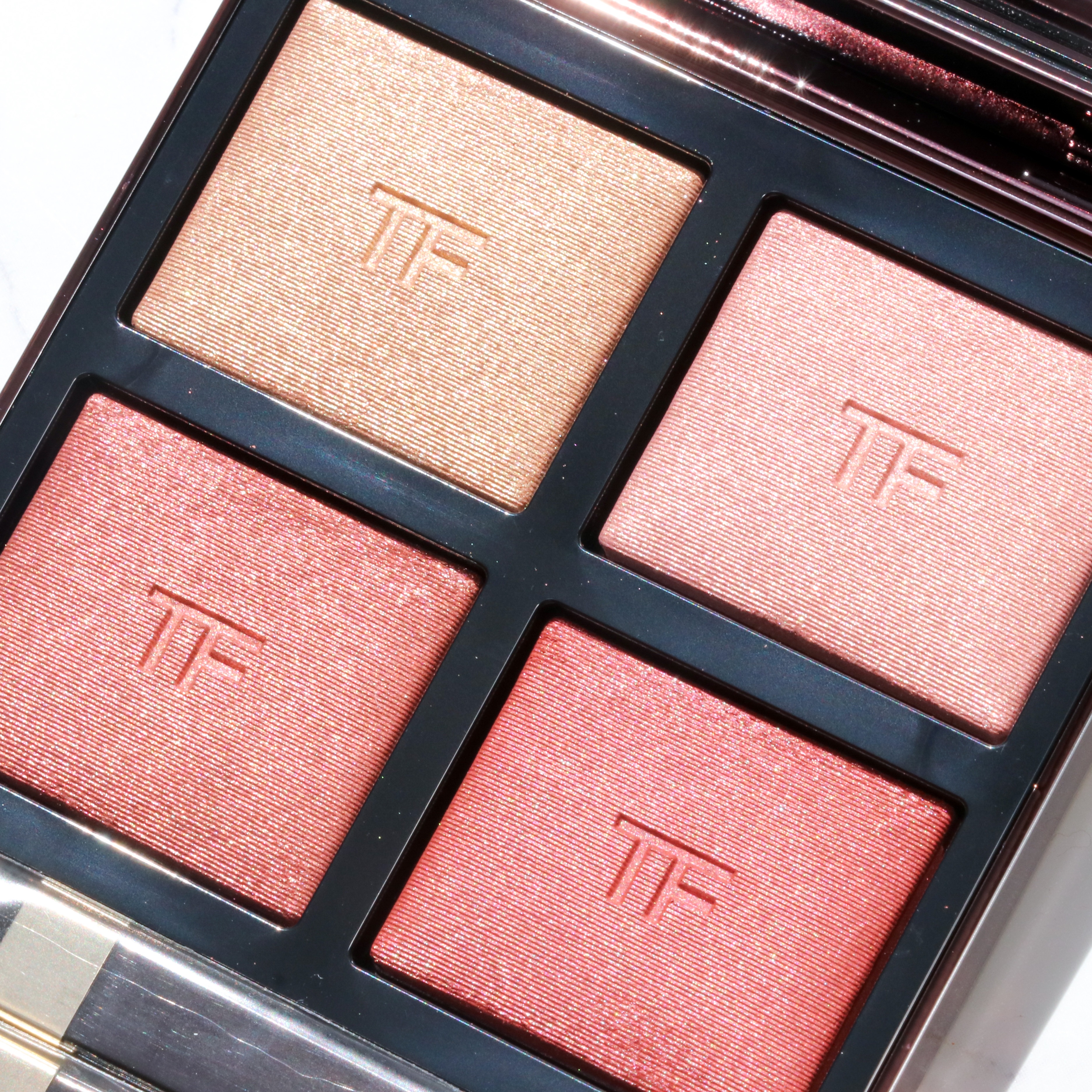 TOMFORDBEAUTYアイカラークォード01ゴールデンミンク左上のゴールドを涙袋に💛左下のベージュをベースに🧸右上のキラキラを二重幅に✨右下のブラウンをライナーに🤎ྀིだいたいトム様パレットは、右下の濃いカラーがライナーになります꒰՞ɞ̴...