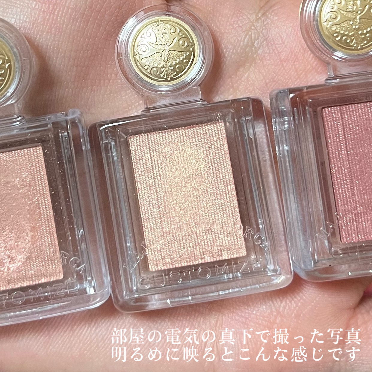 まぶたのくすみをカバーして、アイシャドウの発色&モチUP!! ベースメイク後、アイシャドウを塗る前(アイメイク前)に使います! アイシャドウベースを使う方が、アイシャドウの発色が良いです🙆♀️ 右側のベース有りの方が発色がよく、ラメも綺麗ですよね! アイシャドウベース無しでもメイクは成り立つので、必須ではありません。 それでもアイシャドウベース有りの方が発色がよく、モチもいいです! アイシャドウベース、個人的にはメイクに慣れてきてレベルアップしたい方、メイクの幅を広げたい方におすすめです!