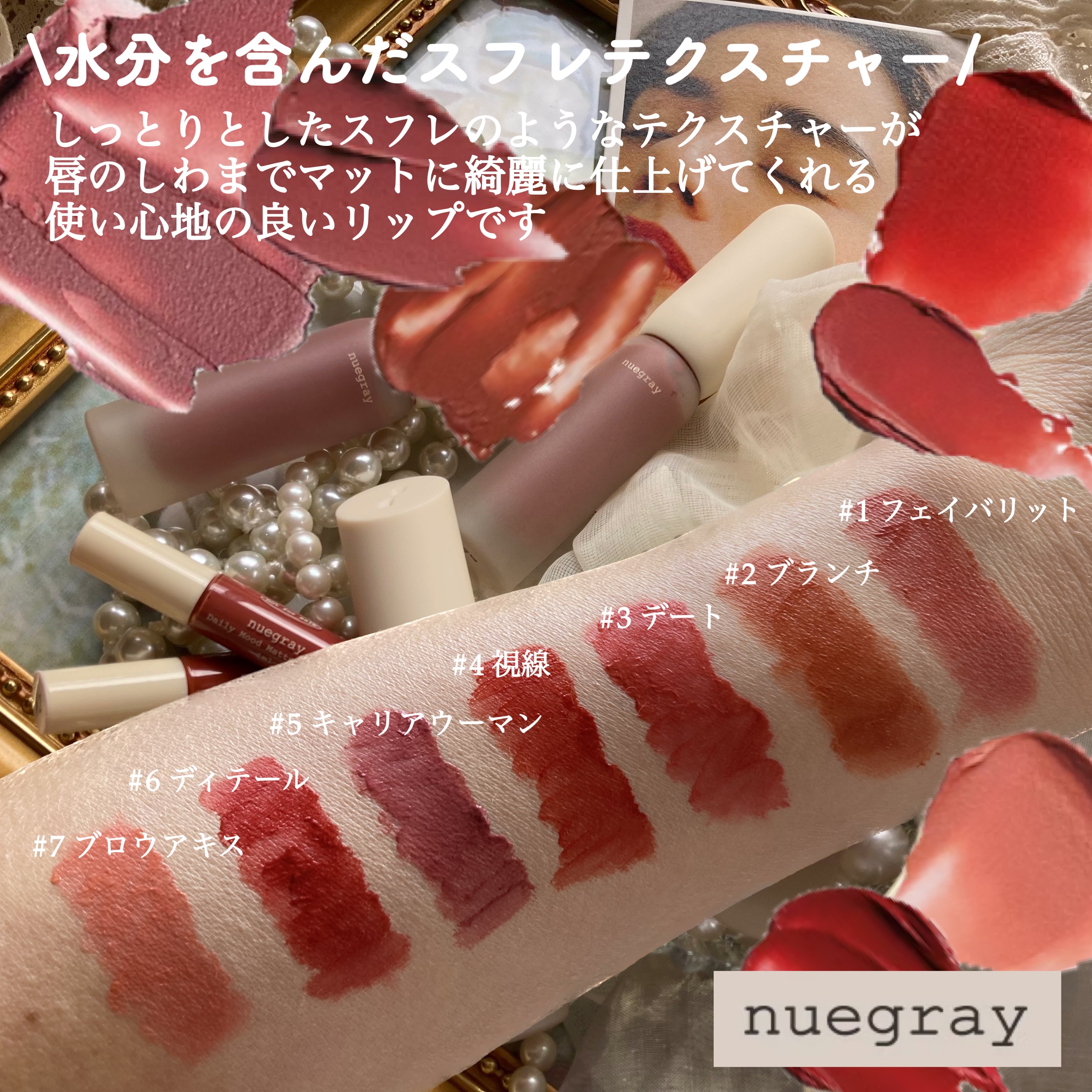 nuegray/デイリームードマットリキッドカラー名:041990フォロワーさんが激推ししてて購入❤️粉っぽくなく、マットすぎないマットリップですごく不思議な感じ!ティッシュオフ後の色残りも良く、カピカピしわしわにならなくてとても良かった〜✨...