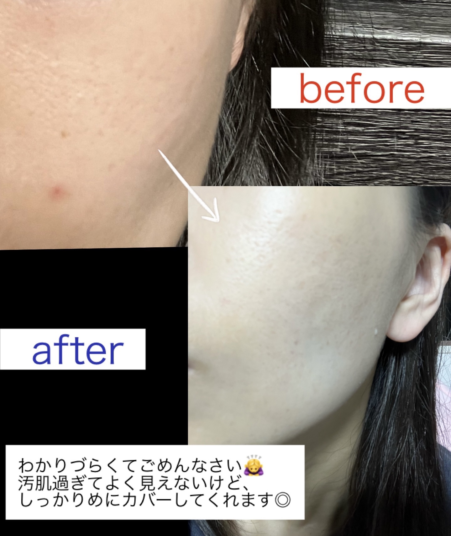 カバー力はあまりありませんが、ワントーンアップしてくれる商品です◎ あとは意外とよれない✴︎ ローソンで買えるし、量が少ないのでお試しで使うにはもってこいのサイズ感。 毛穴は多少綺麗にしてくれますが赤み等は消えないので、勝負の日にはしっかりファンデと塗ってね! ちなみに、私の場合は肌の調子が良くない時に、ノーファンデかつこの下地にパウダーをのせて使ってます。 たぶんもっと良いものはあるから、リピはしないです!