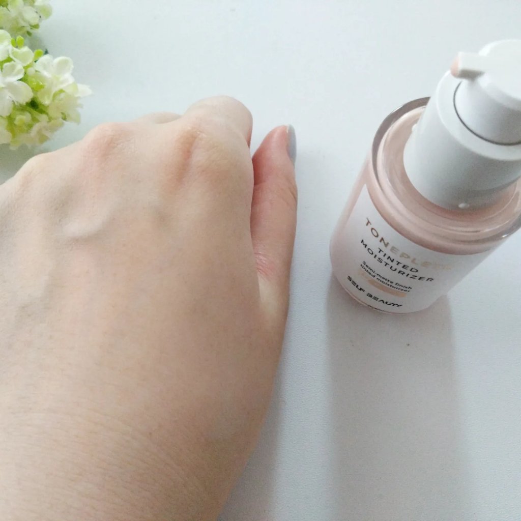 ピンクのトーンアップ下地。しっとりしてて乾燥肌には良いかも。 紫外線散乱剤のみの特有の皮膜感やぺたぺた感あり。お花の香り🌸 写真でみるとトーンアップ感あるが、肉眼だとそんなに感じない💦