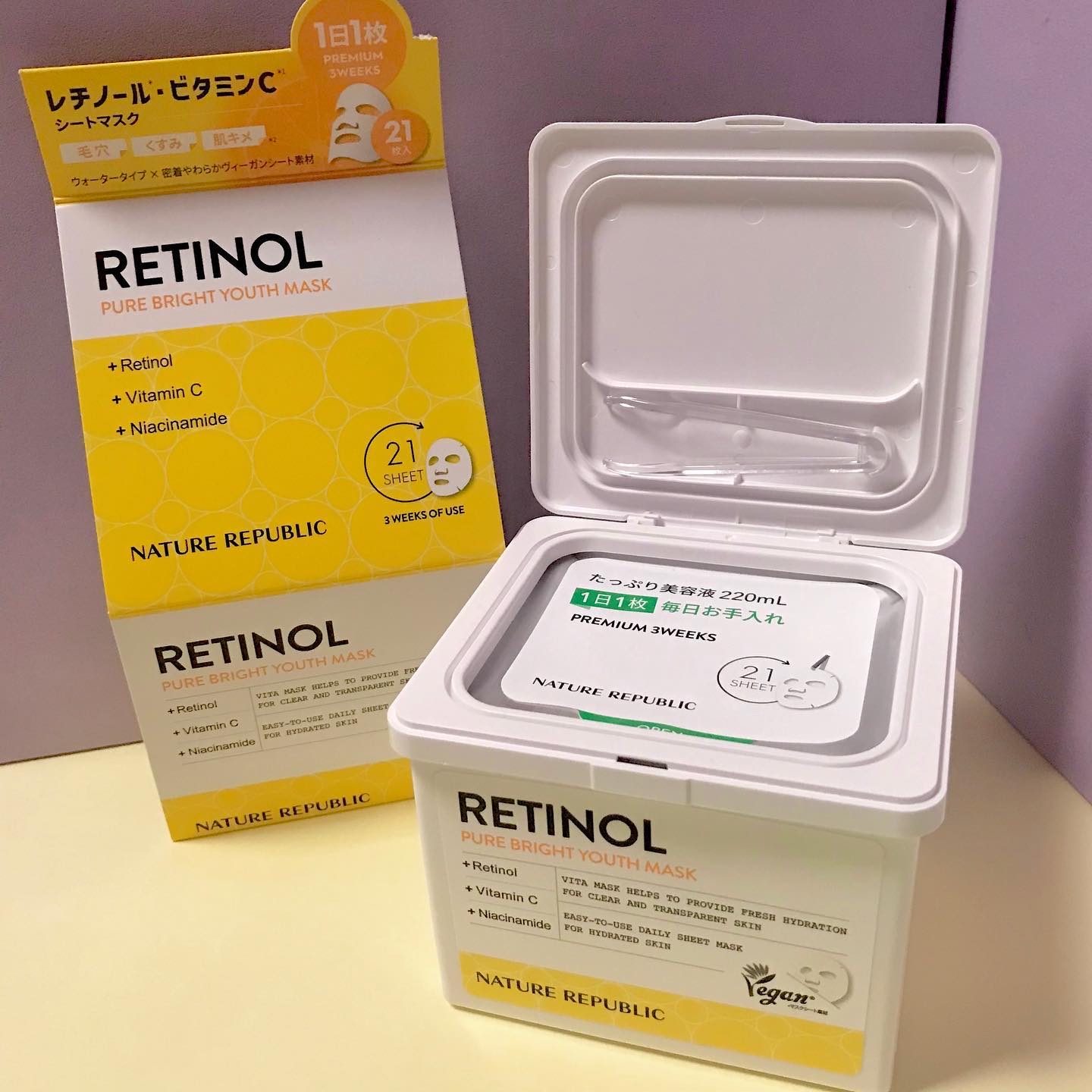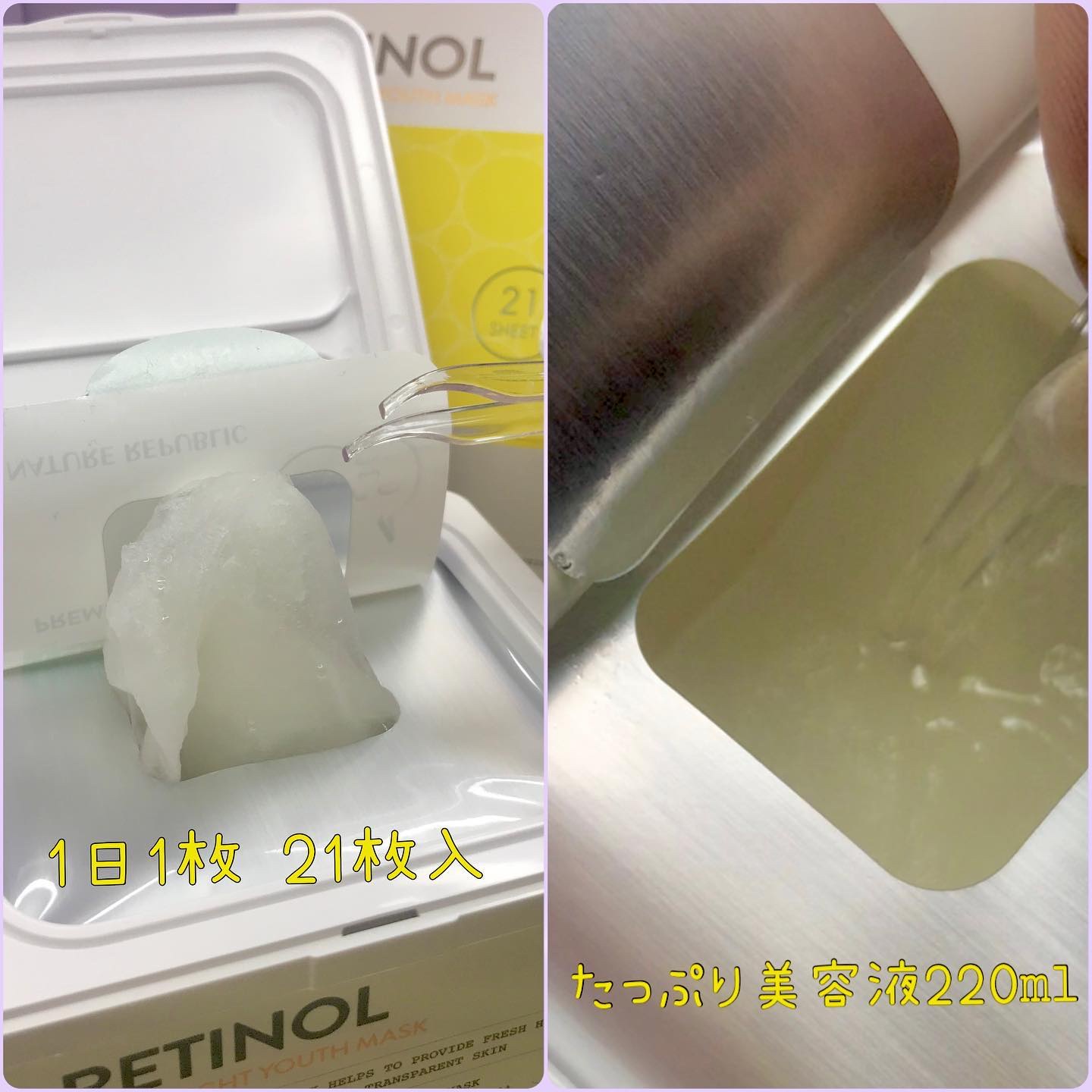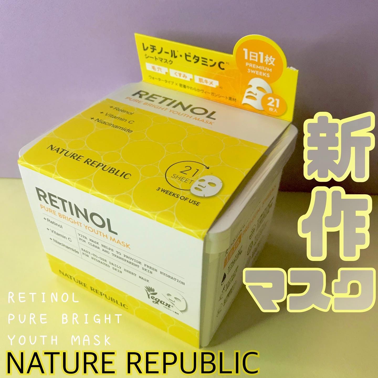 ⌇NATUREREPUBLIC提供元:MOREME〖レチノールピュアブライトユースマスク〗レチノールとビタミンが配合されたキューブレチノールマスクがリニューアル🔮⟡.·21枚⇒30枚入りの大容量になりデイリー用として使える🤲🏻シートは柔らかく...