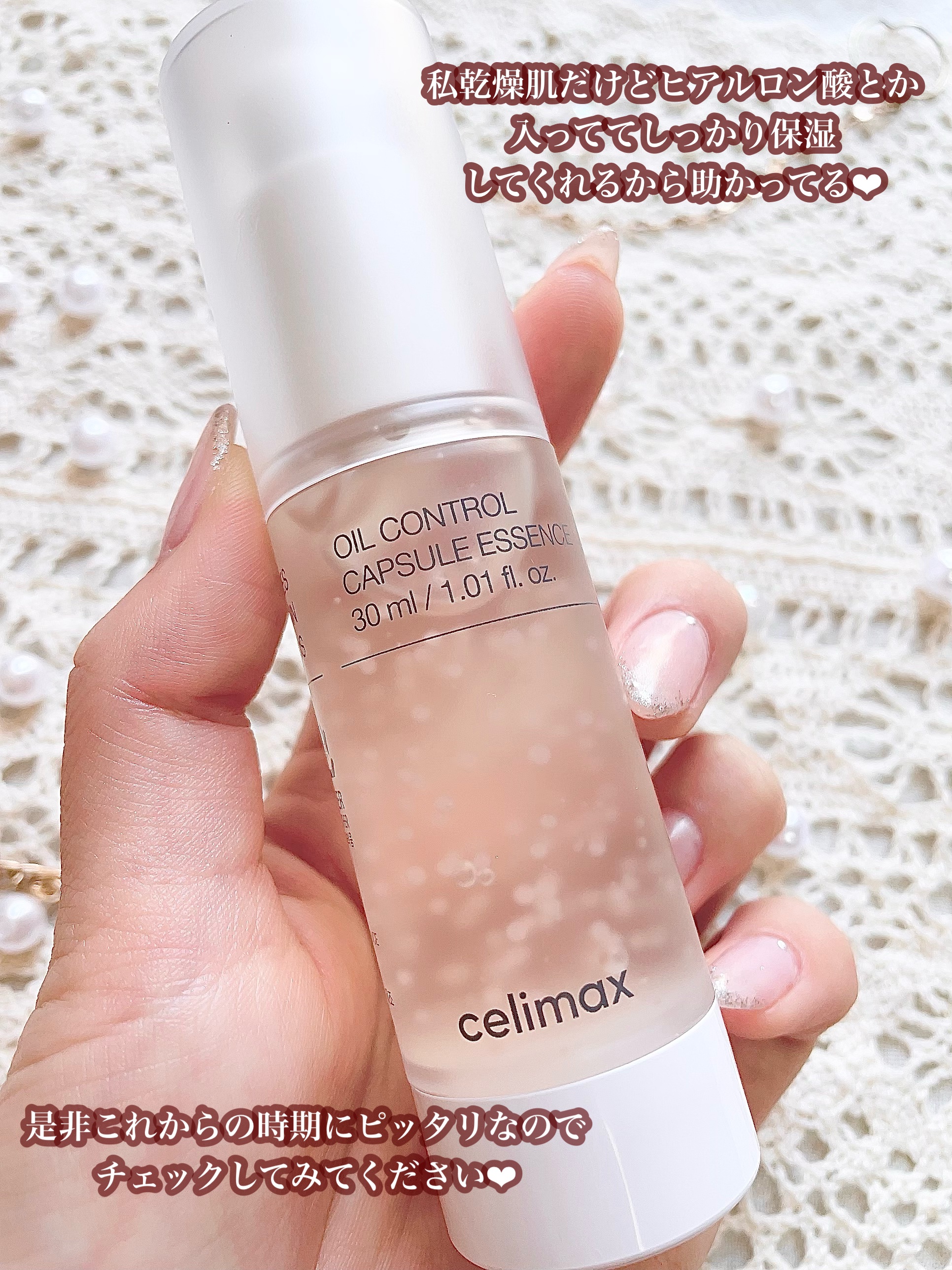 いつもの化粧前に仕込むだけで猛暑でも化粧崩れしないお肌が完成する! 普通の皮脂テカリパウダーやあぶらとり紙、プライマーとは違い根本的にテカテカ肌を解決してくれる 毛穴をキュッと小さくして過剰な油分をださないようにしてくれるから長時間さらさらの状態をキープ𓂅 この小さいつぶつぶ実はセラミドカプセルという水分を逃さないようにしてくれるもので内側は潤いたっぷり外側はさらさらに☁️ 美容液とは思えないくらい高性能なので是非チェックしてみてください⺣̤̬︎︎