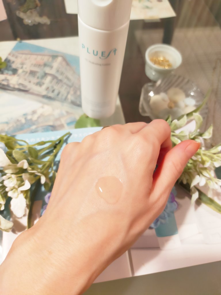 ハイドロジェルをベースにしたことで、みずみずしいテクスチャーなのに高保湿なクリームが実現。 うるおいバリアを整えながら、エイジングケア*成分である「ツボクサ」「プロテオグリカン」「ペプチド」を角質層に届けます。 続けるたびにぷるんと触りたくなる肌に。 PLUESTシリーズは、みな成分に拘り、エイジングケアに特化したものばかり✨ 洗顔初め、どのスキンケアアイテムも保湿効果があるからか肌触りがよくなるのでとても気に入ってます😊✨ クリームは濃厚というより軽いタイプで、サラっと伸びて使いやすかったです♪